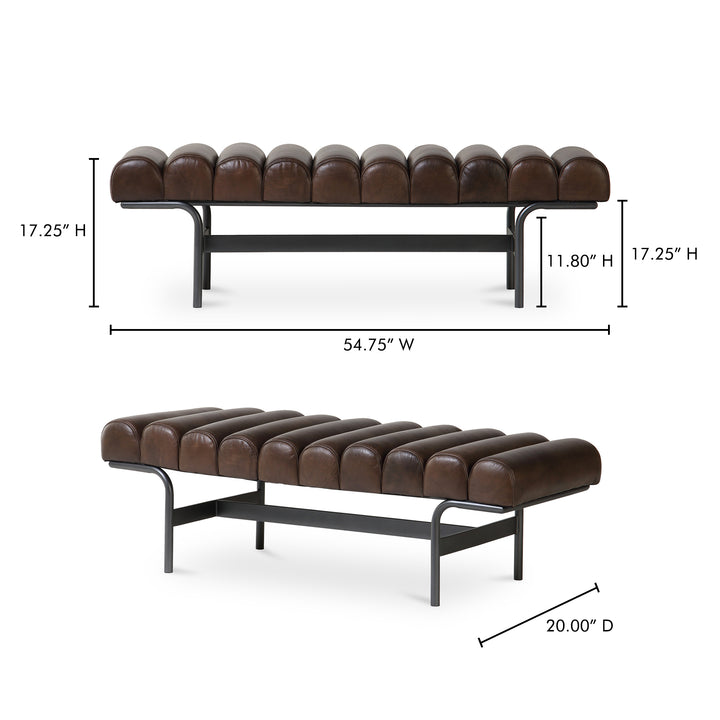 Adler Bench, Top-Grain Buffalo Leather Upholstery, Foam Core Seat Cushion, Seats 3, Dark Brown