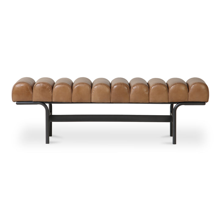 Adler Bench, Top-Grain Buffalo Leather Upholstery, Foam Core Seat Cushion, Seats 3, Tan