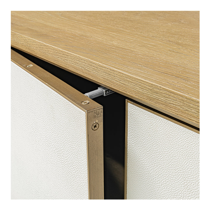 Alarno Sideboard, Shagreen Patterned Doors, Solid Oak Frame With Antique Gold Accent, White