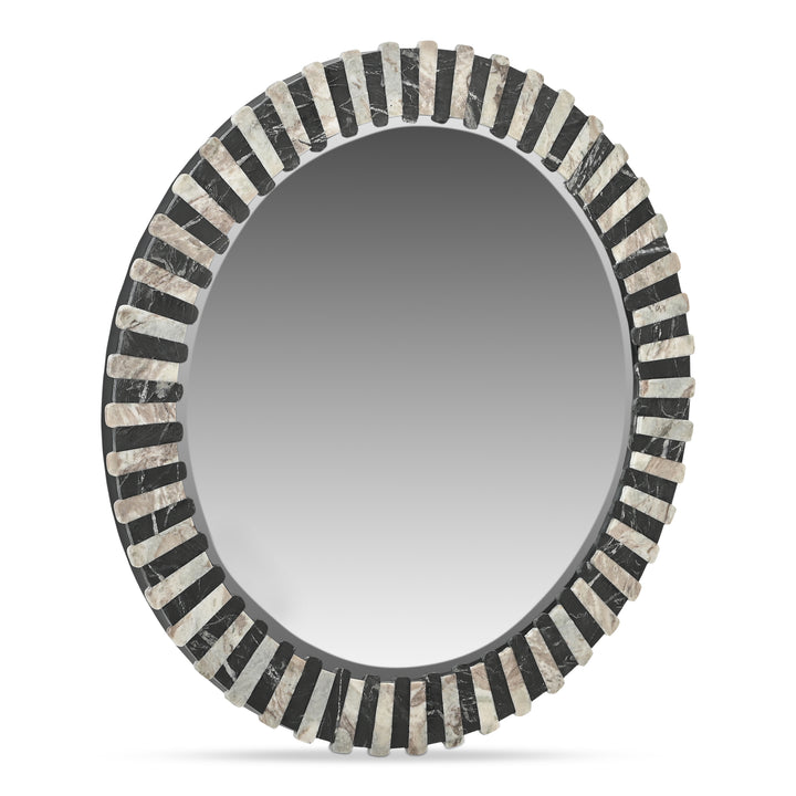 Alcott Wall Mirror, Hand-Laid Torrento & Black Marble, Matte Leathered Finish