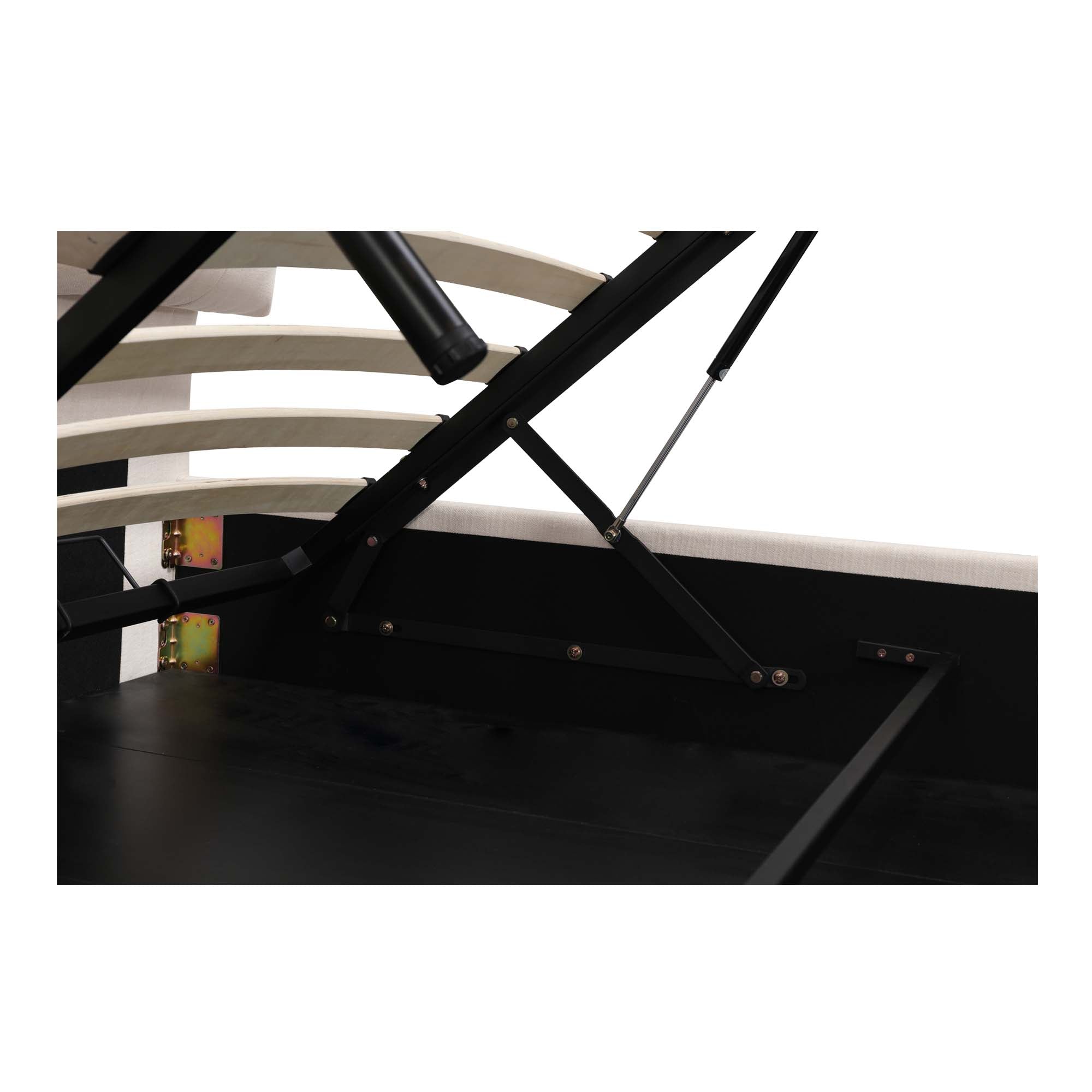 Aloura Queen Bed, Upholstered, Solid Wood Frame, Hydraulic Lift Storage, Cream