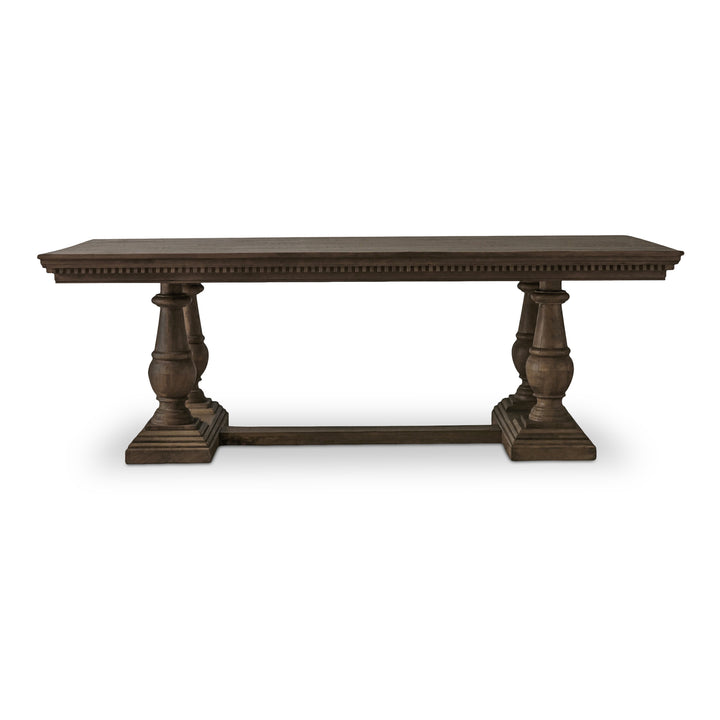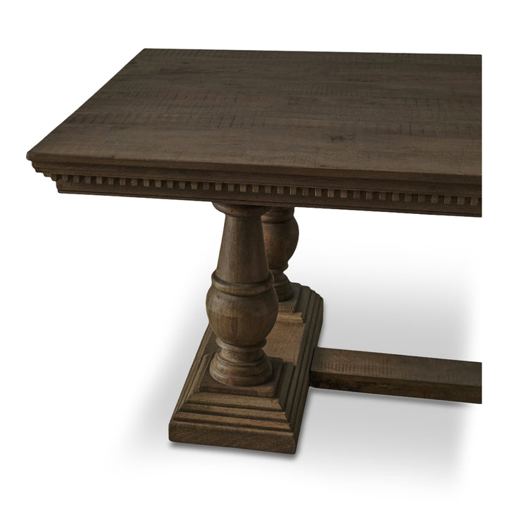 Crafted from solid mango wood, the Alrican Dining Table from Nadaal Studios blends craftsmanship with everyday functionality. Featuring molding details on the tabletop and a stretcher-style leg design, this table makes a bold yet classic statement. Its spacious surface comfortably seats eight to ten people, making it a perfect choice for family dinners, celebrations, and everyday meals. Built to last and designed to evolve with your space.
