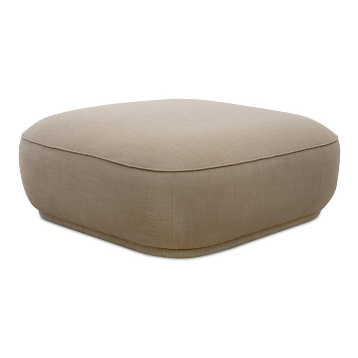 Alston Oversized Ottoman - Curved Square Upholstered Coffee Table with Anti-Stain Fabric, Recessed Base, Beige