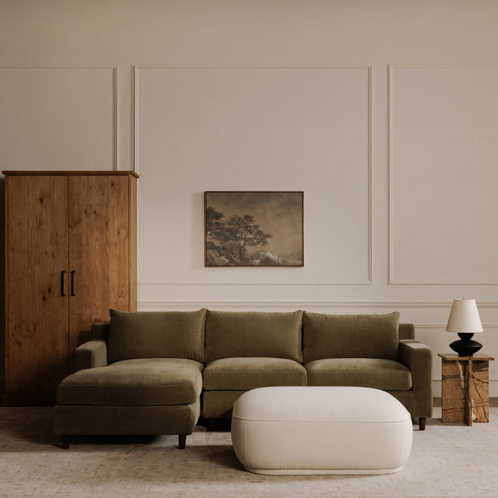 The Nadaal Studios Alston Ottoman in White is a versatile oversized piece that effortlessly functions as both a coffee table and extra seating. Designed with a plush, curved silhouette, this ottoman features a recessed base, creating a floating appearance that enhances modern interiors. The 100% polyester upholstery is treated with C0 Performance anti-stain protection, ensuring resilience against spills and everyday wear. Built with a solid wood and plywood frame, its high-density foam core is reinforced with fiber fill, maintaining its shape and providing long-lasting comfort. Whether styled in a living room, bedroom, or lounge area, the Alston Ottoman’s timeless elegance and practical design make it a standout piece.