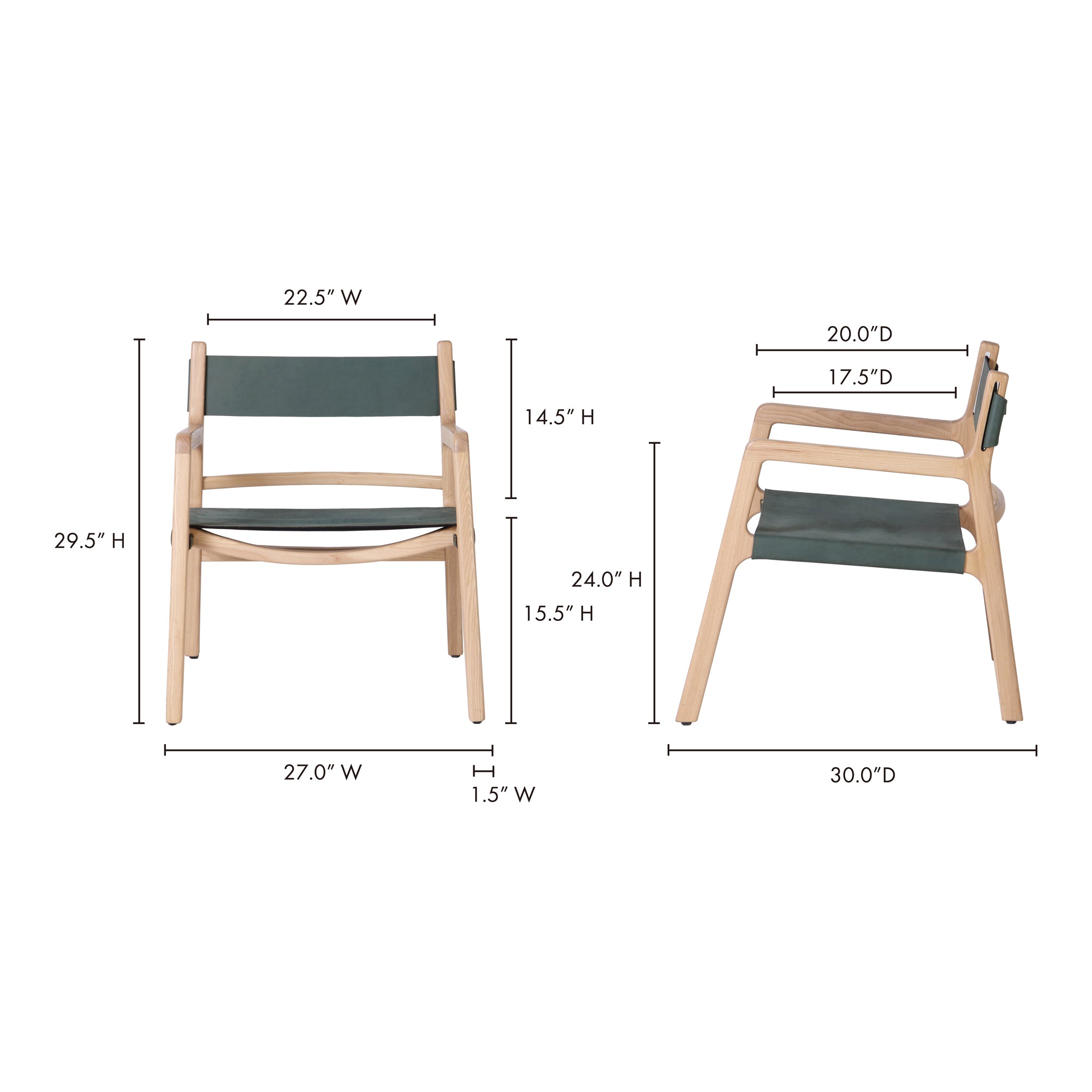 The NADAAL STUDIOS Aman Accent Chair brings together mid-century design and modern elegance in one versatile piece. Featuring a solid ash wood frame and a deep, leather sling seat in seagrass green, this chair is perfect for use as an accent, occasional, or dining chair. Its timeless appeal and contemporary functionality make it a valuable addition to any room. With no assembly required, the Aman chair is ready to enhance your living space, offering both style and comfort.