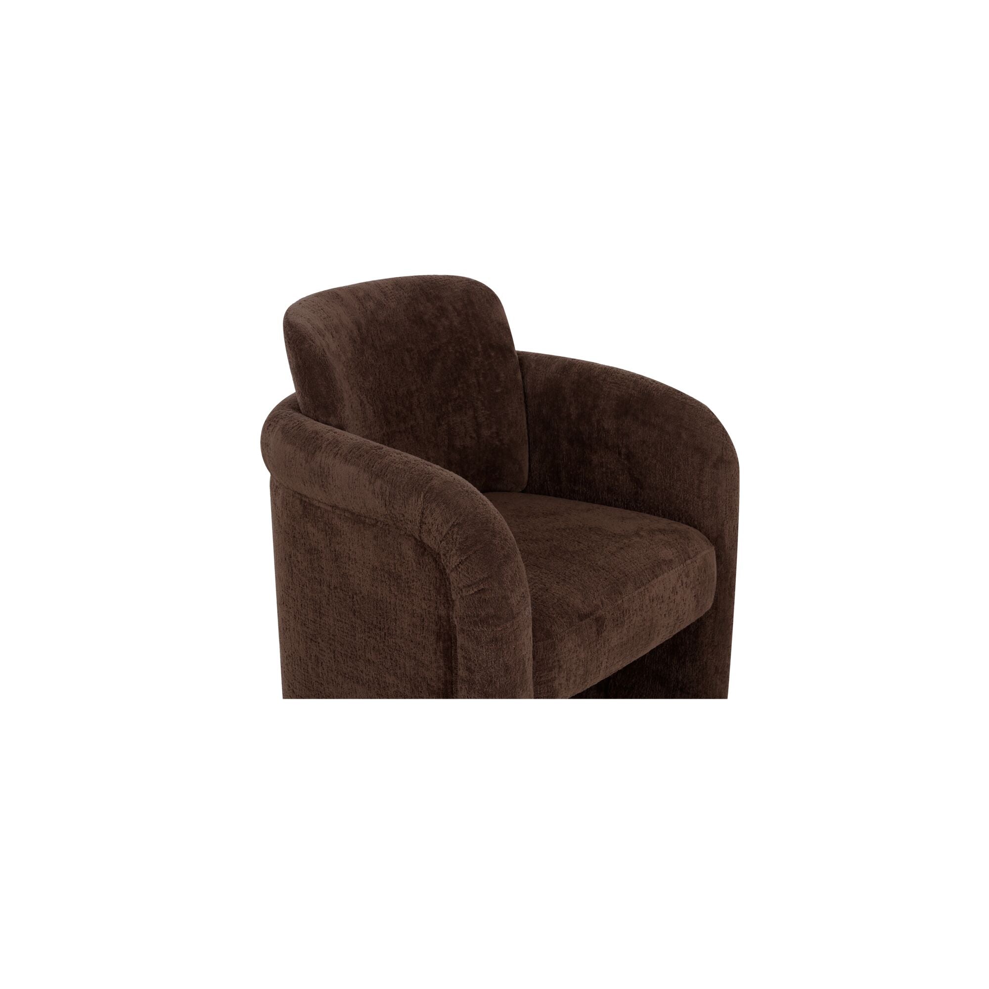 Amara Dining Chair, English Roll with Pleated Details, Polyester Upholstery, Plywood Frame, Dark Brown