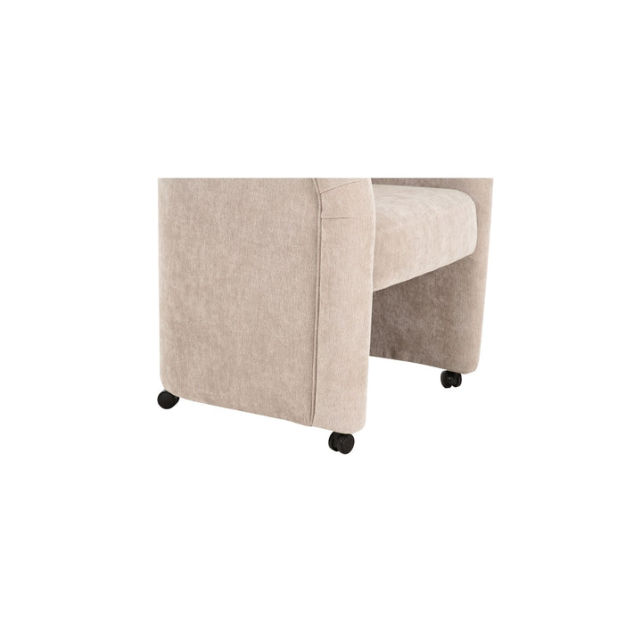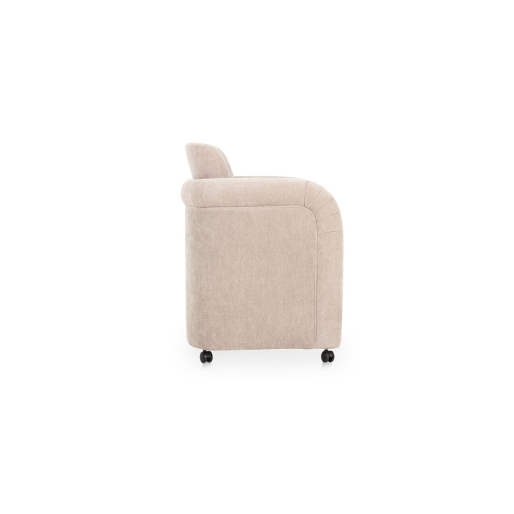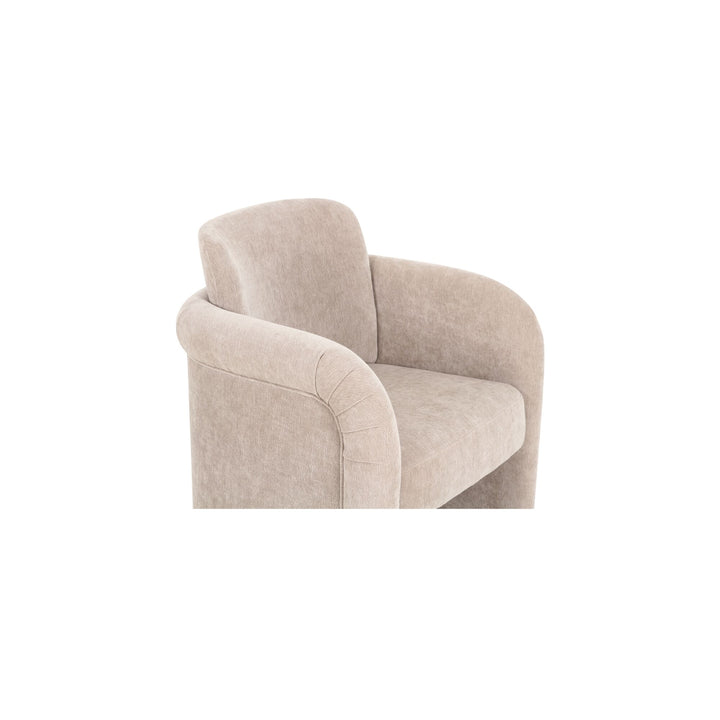 Amara Dining Chair, English Roll with Pleated Details, Polyester Upholstery, Plywood Frame, Taupe