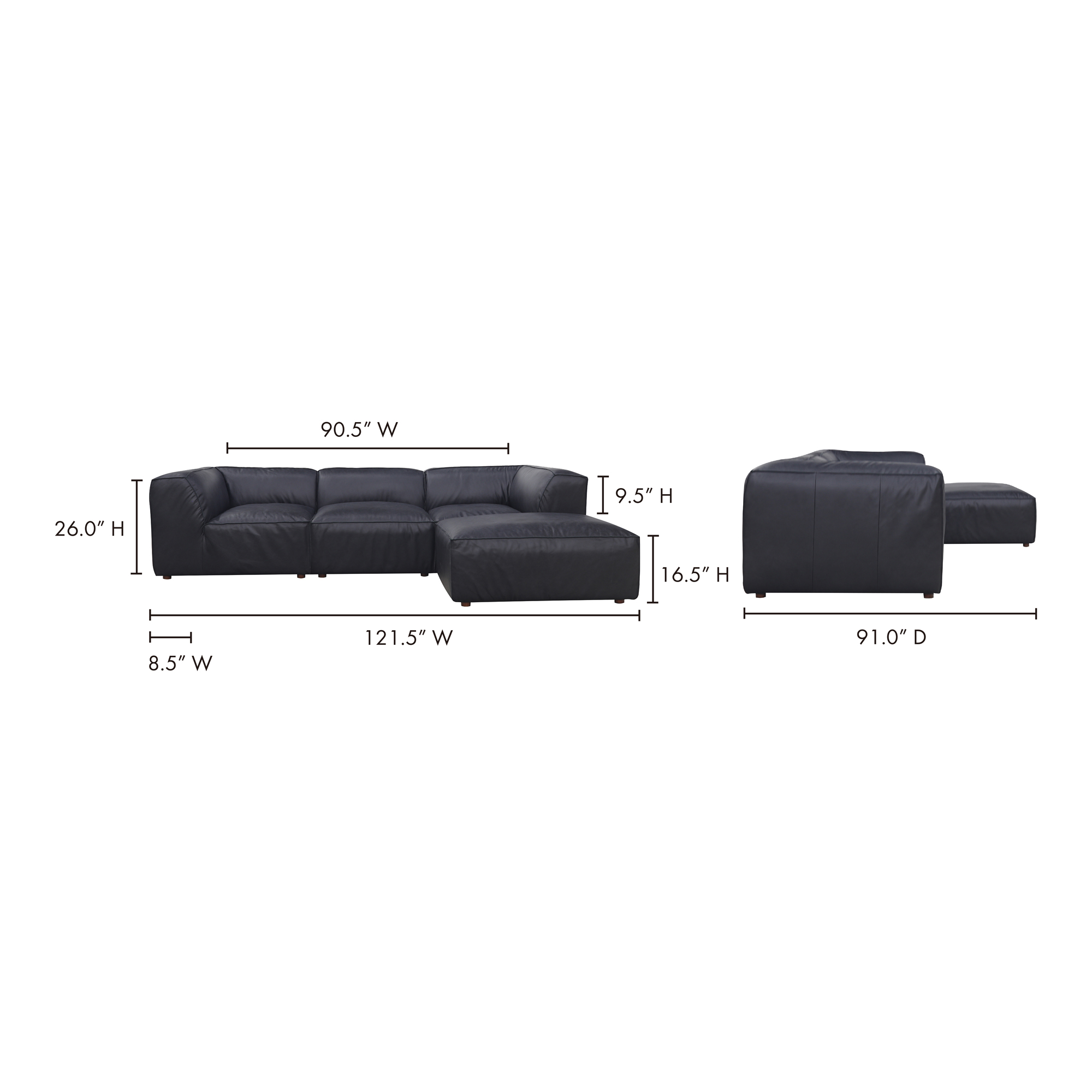 Ambrosia Lounge, Scandinavian Modular Sectional, Full Top-Grain Leather Upholstery, 4 Seater, Black