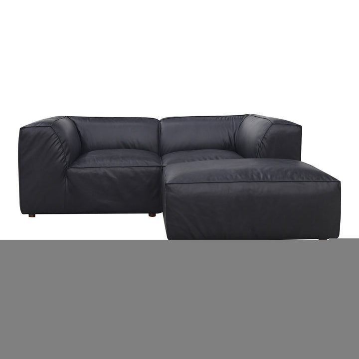 Ambrosia Nook, Scandinavian Modular Sectional, Full Top-Grain Leather Upholstery, 3 Seater, Black