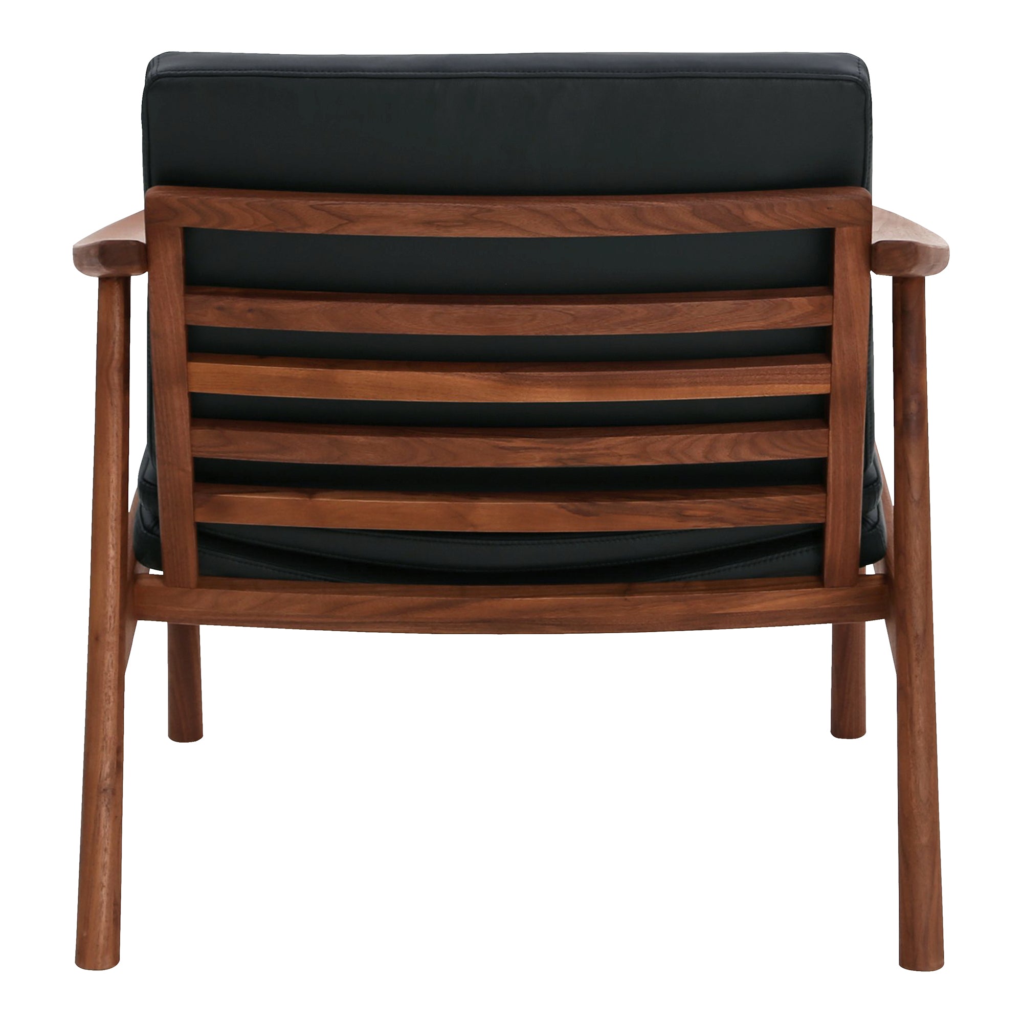 Ansel, Accent Chair Top-Grain Leather, Solid Walnut Frame, Pebbled Black