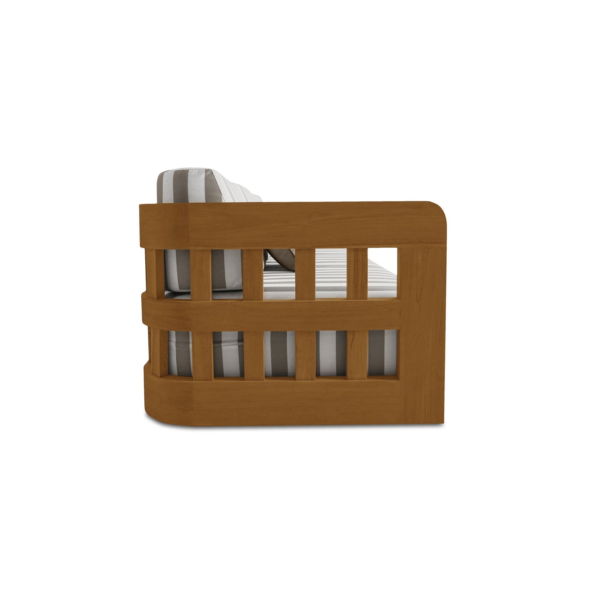 Bring sculptural style and deep comfort to your outdoor living space with the Aralina Outdoor Sofa. This design-forward piece features curved windowpane detailing, solid teak construction, and soft brown and white striped cushions. Perfect for patios and terraces, the Aralina Sofa comfortably seats three and is designed to handle the elements while keeping your space warm and inviting.