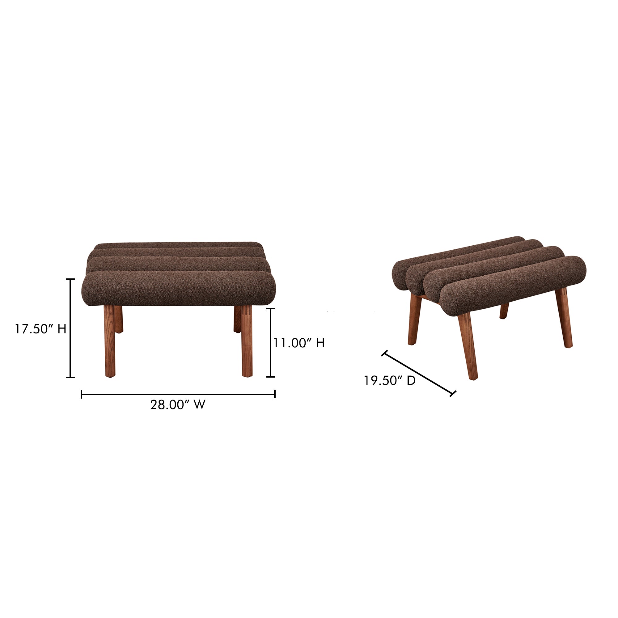 Ashby Accent Stool, Solid Ash Wood Legs, Foam Seat, Deep Brown
