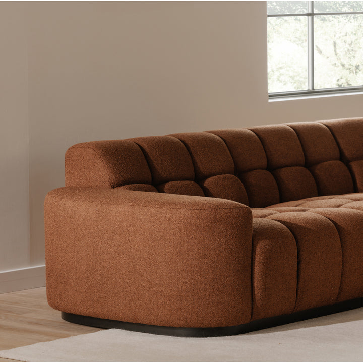 Breccan L-Shaped Sectional, Polyester-Linen Upholstery, Square Tufting, Rust, 5 Seater