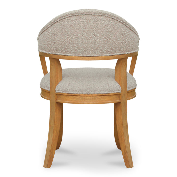 The Breyson Dining Chair from Nadaal Studios invites comfort into every gathering with its sculptural form and soft upholstery. Featuring a curved backrest, rounded cushion seat, and a subtle flare at the base, this chair blends natural flow with supportive structure. Wrapped in a taupe polyester blend and built on a thick, wire-brushed rubber wood frame, Breyson is a perfect mix of elegant form and practical function. Whether paired with a wood table or styled on its own, it brings ease and sophistication into dining spaces of all kinds.
