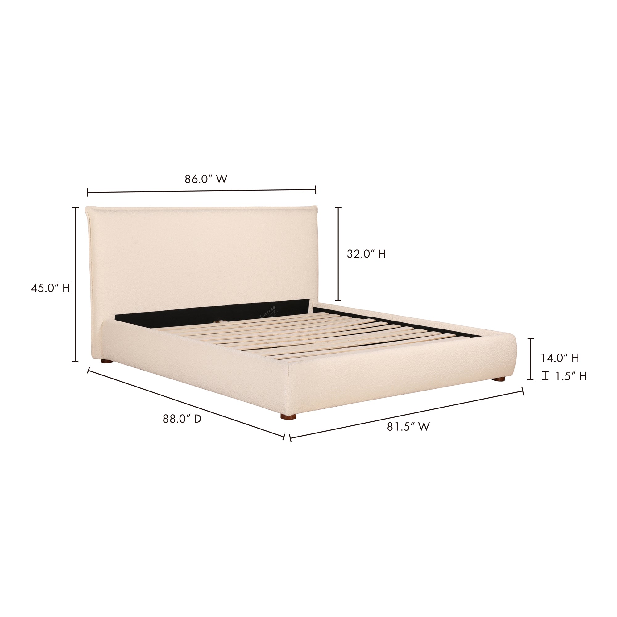 Dive into a universe where style and comfort coexist with the Briar King Bed by Nadaal studios, encapsulating contemporary aesthetics with a white, 54% polyester, and 46% acrylic boucle fabric upholstery. Crafted in China, the sculptural, rounded form is underscored by a foam-padded headboard and supportive slats, ensuring your mattress retains its form, without a box spring. With a 1-year warranty, Briar is not just a bed; it's an experience, echoing modern functionality and enduring design.