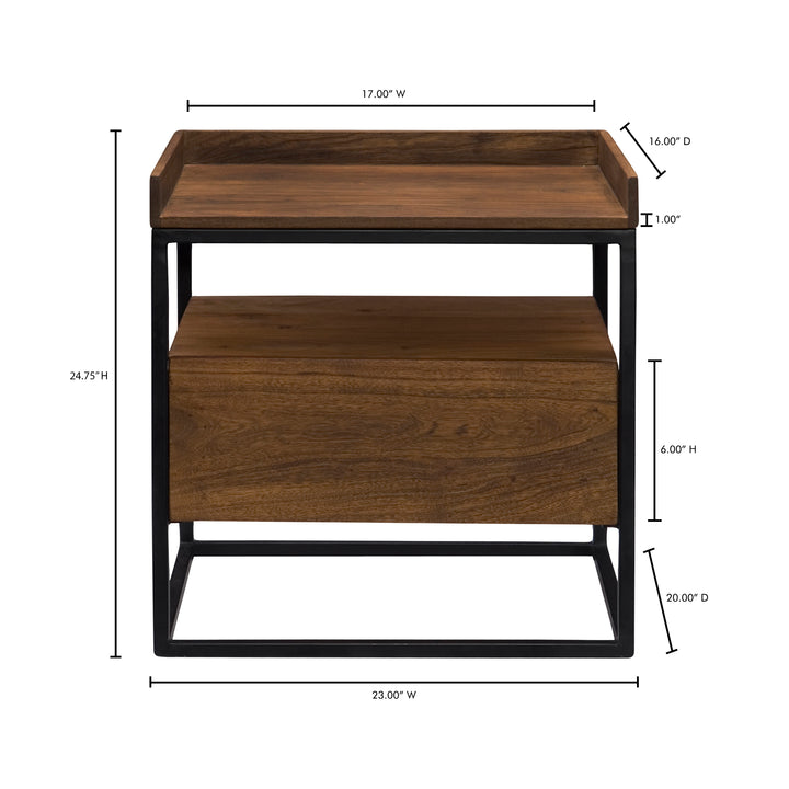 Burrard Side Table, Solid Acacia Wood with Drawer, Iron Frame, Industrial Style