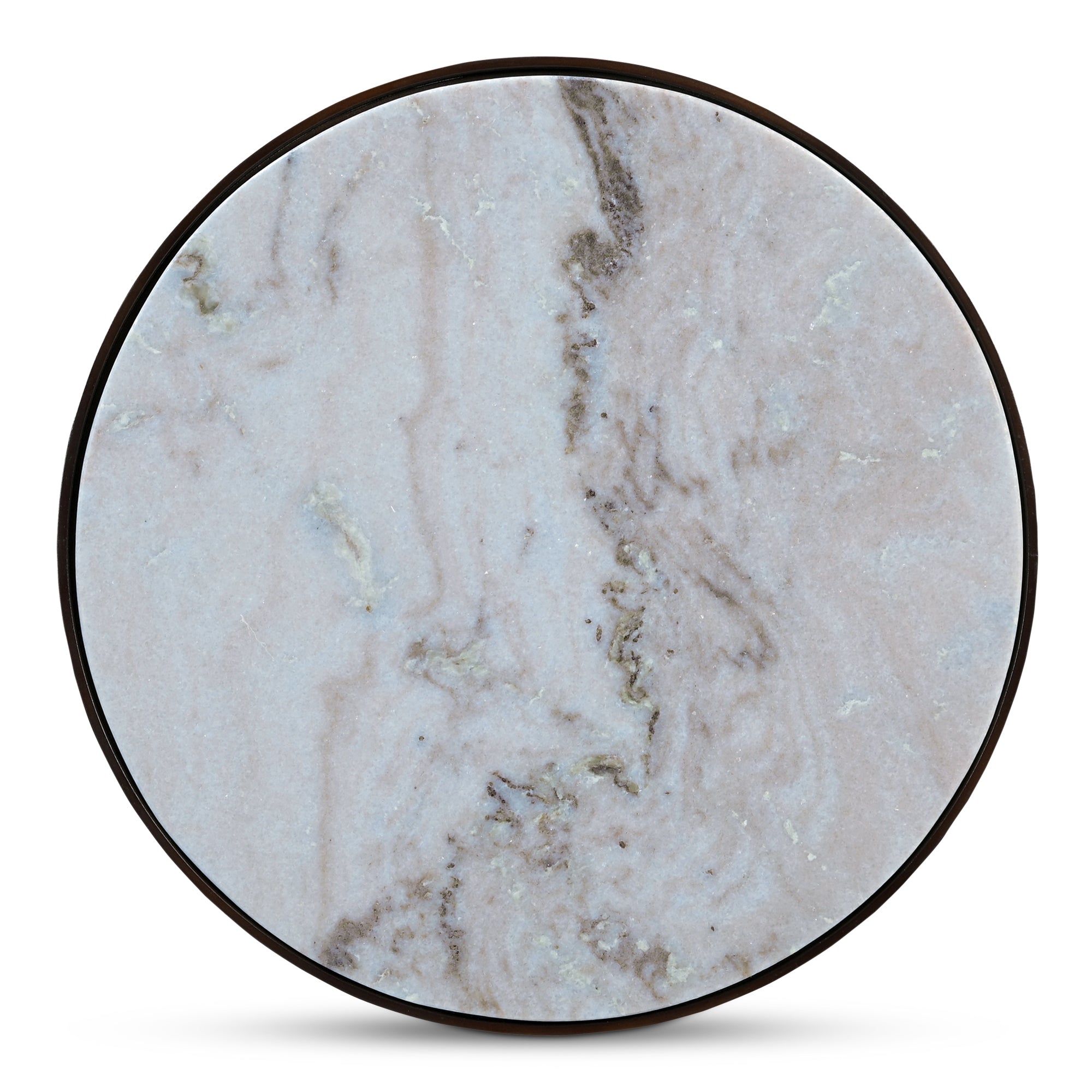 Caelin Side Table, White Marble Top with Iron Base and Metal-Rim Edge, White