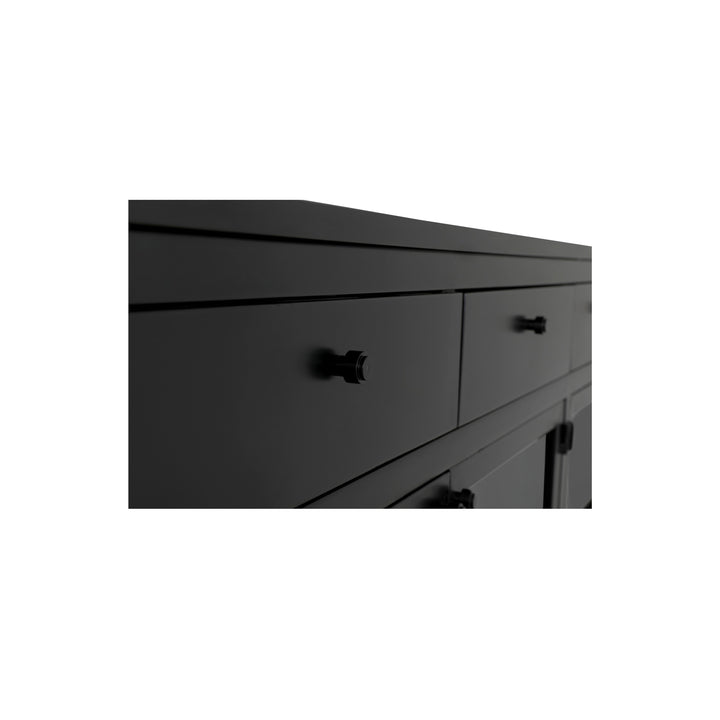 Calen Sideboard, Black Powder-Coated Iron With Tempered Glass Doors, Black