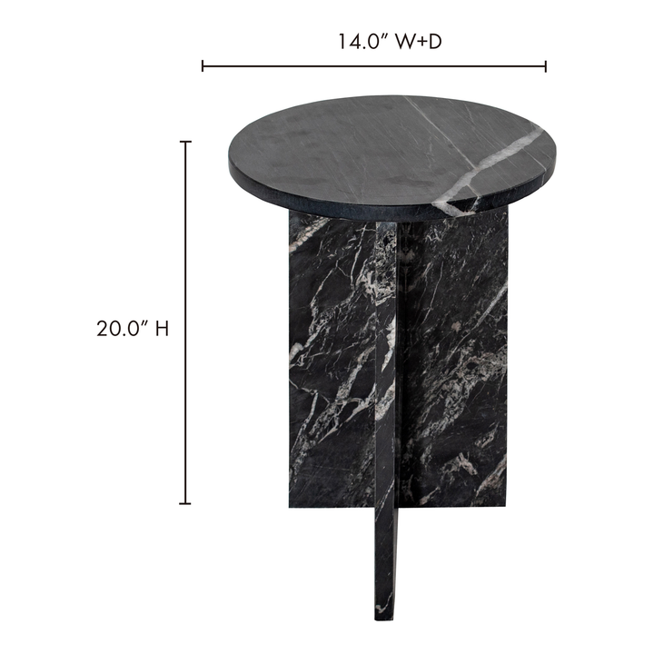 Discover a piece that combines geometric artistry with natural beauty. The Calix Accent Table, with its solid black marble construction, is a true testament to the fusion of form and function, perfect for modern homes. Whether used as an end table, accent piece, or nightstand, it stands out in any setting.
