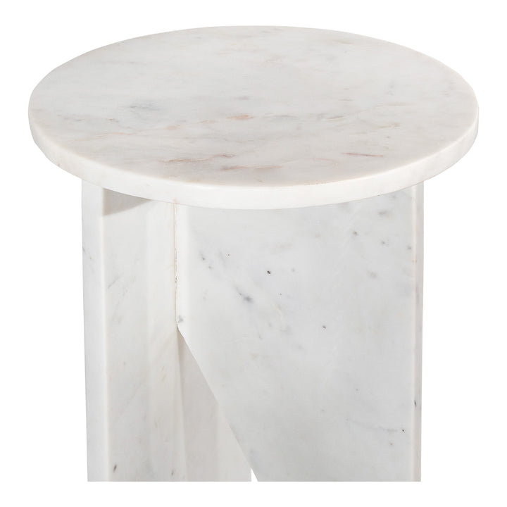 Calix - Contemporary Round Accent Table with Solid White Marble