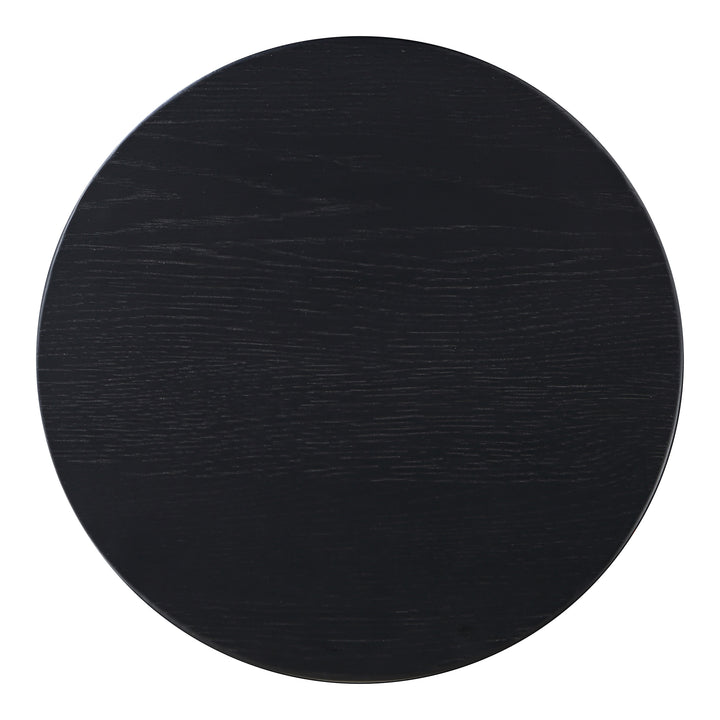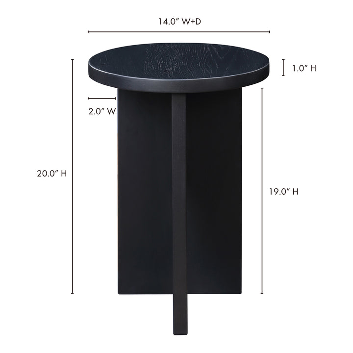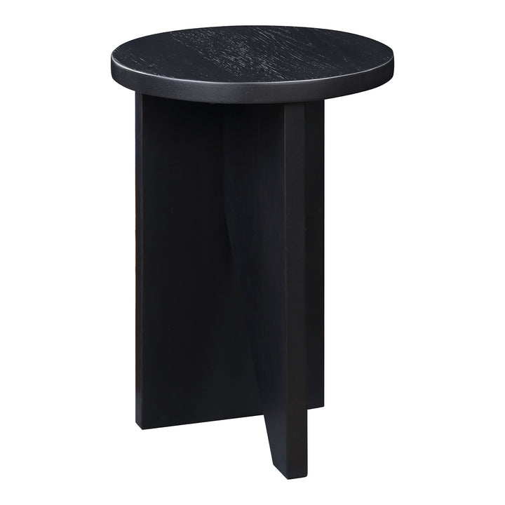 Calix Solid Oak Accent Table, Geometric Base, Round Top, Black Semi-Gloss Finish