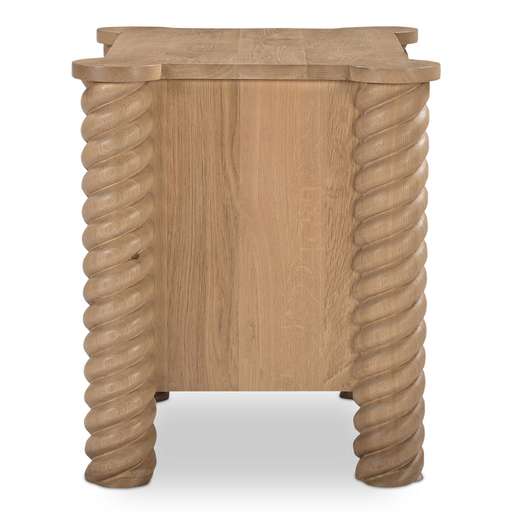 Calvert Treccia Nightstand, Solid Oak with Oak Veneer Panels, 2 Drawers, Turned Legs, Natural Finish