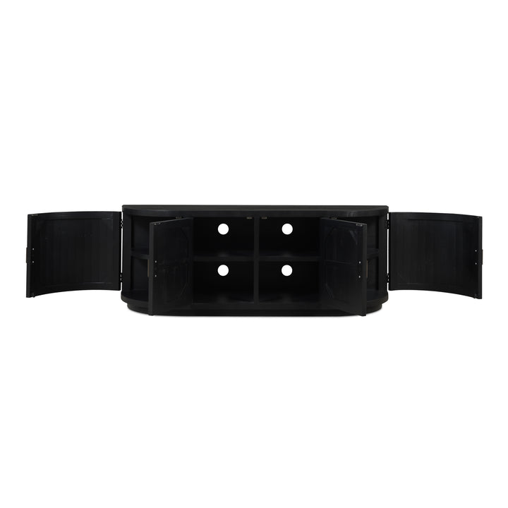 Cameron Media Cabinet, Rustic Freeform with Curved Doors, Reclaimed Pine and Plywood, Black