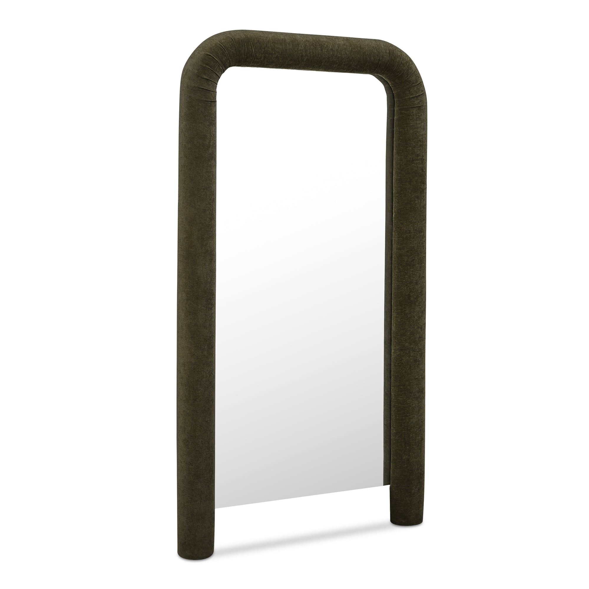 Cassair Floor Mirror, Soft-Corner Ruched Upholstered Frame Full-Length, Olive