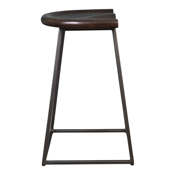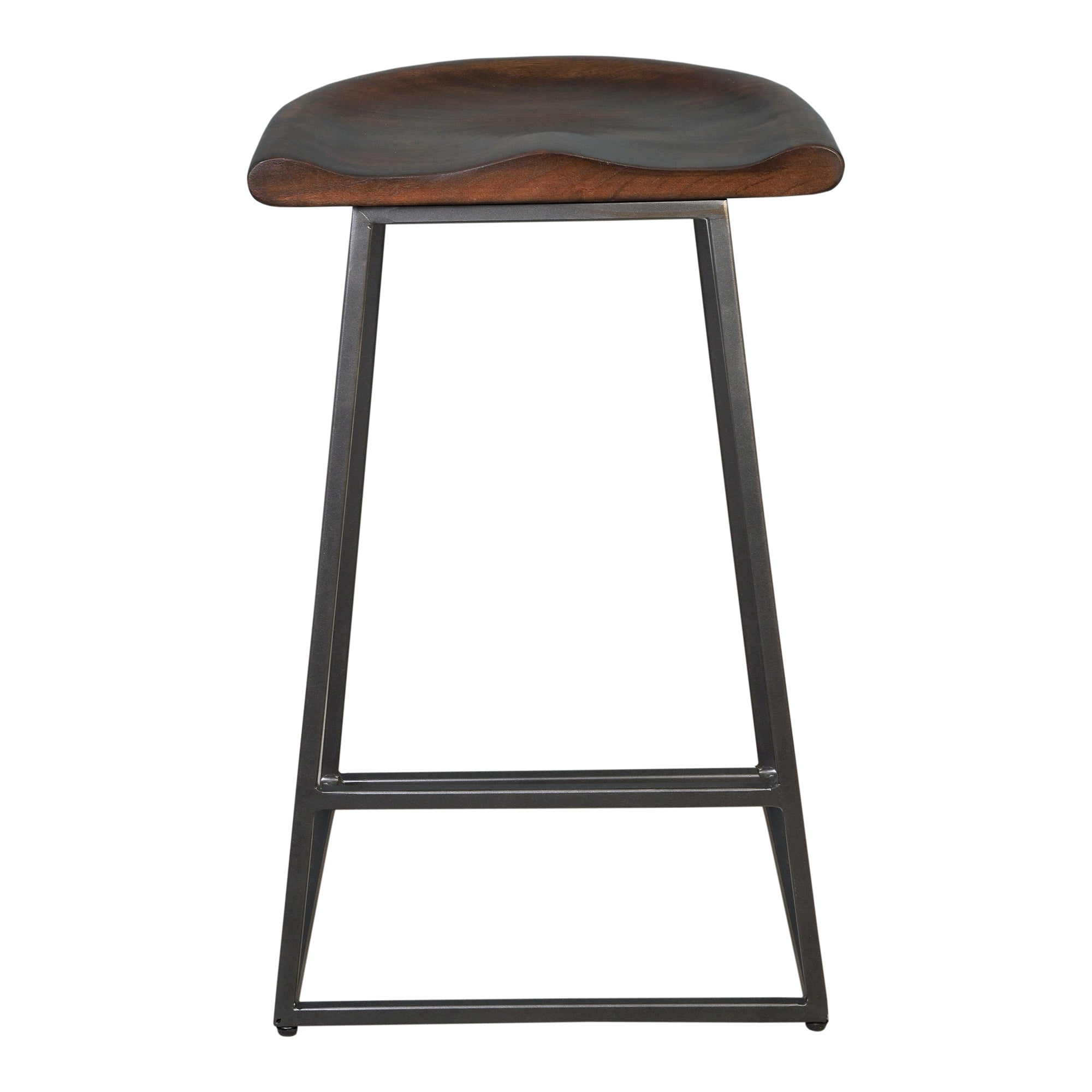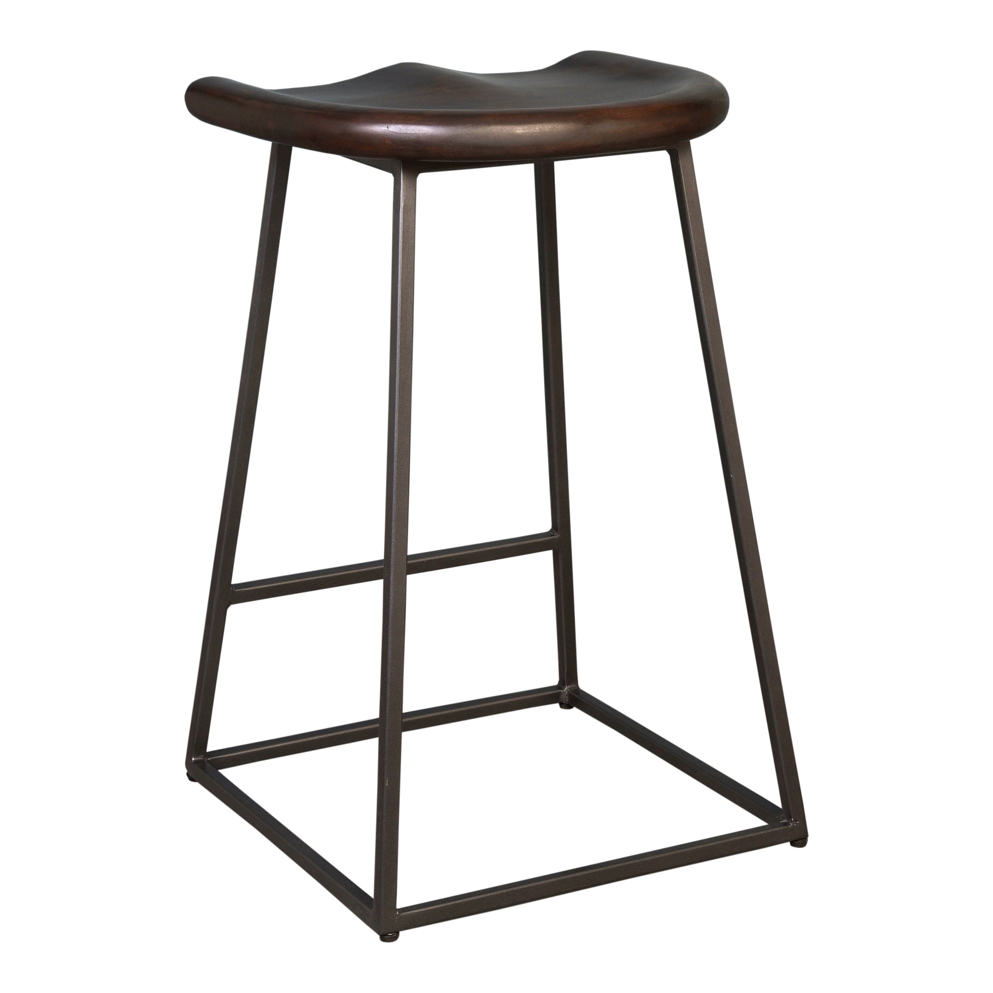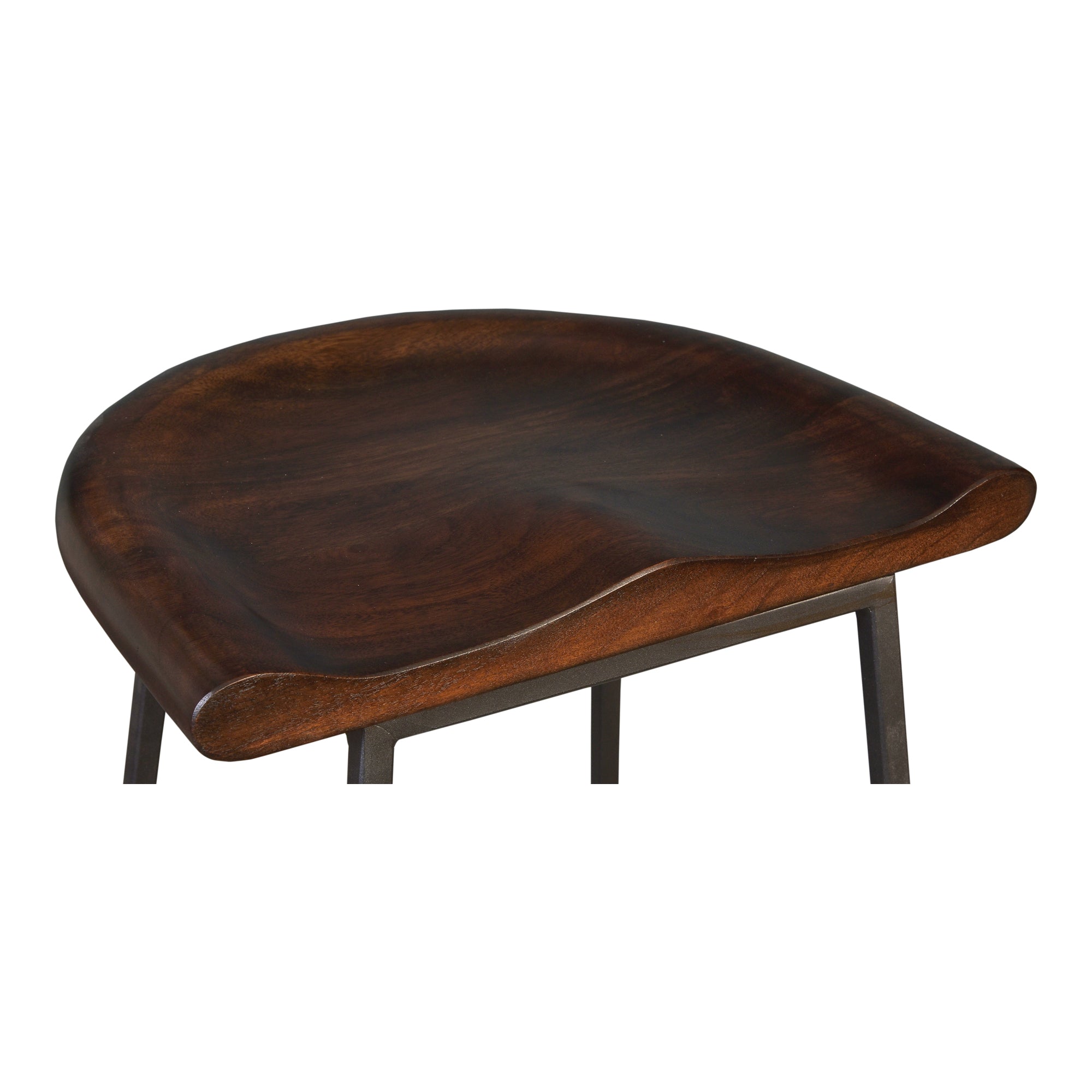 The Castiel Counter Stool from NADAAL STUDIOS combines industrial design with modern comfort. Featuring a 100% solid acacia wood contoured seat and a tapered steel base, this stool offers both style and functionality. The carved seat and foot ledge add extra comfort, making it ideal for long periods of seating. The sleek, dark brown finish enhances its industrial aesthetic, making it a perfect addition to contemporary kitchens or bar areas. Some assembly is required, but the durable construction and elegant design make it a worthwhile addition to your home decor.