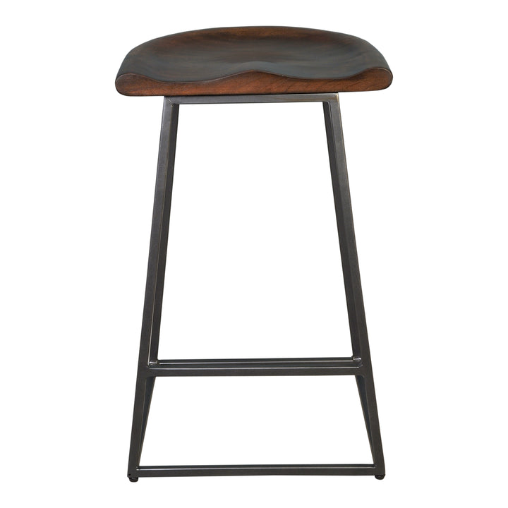Castiel Counter Stool, Solid Acacia Seat with Steel Base, Dark Brown Finish - Set of 2
