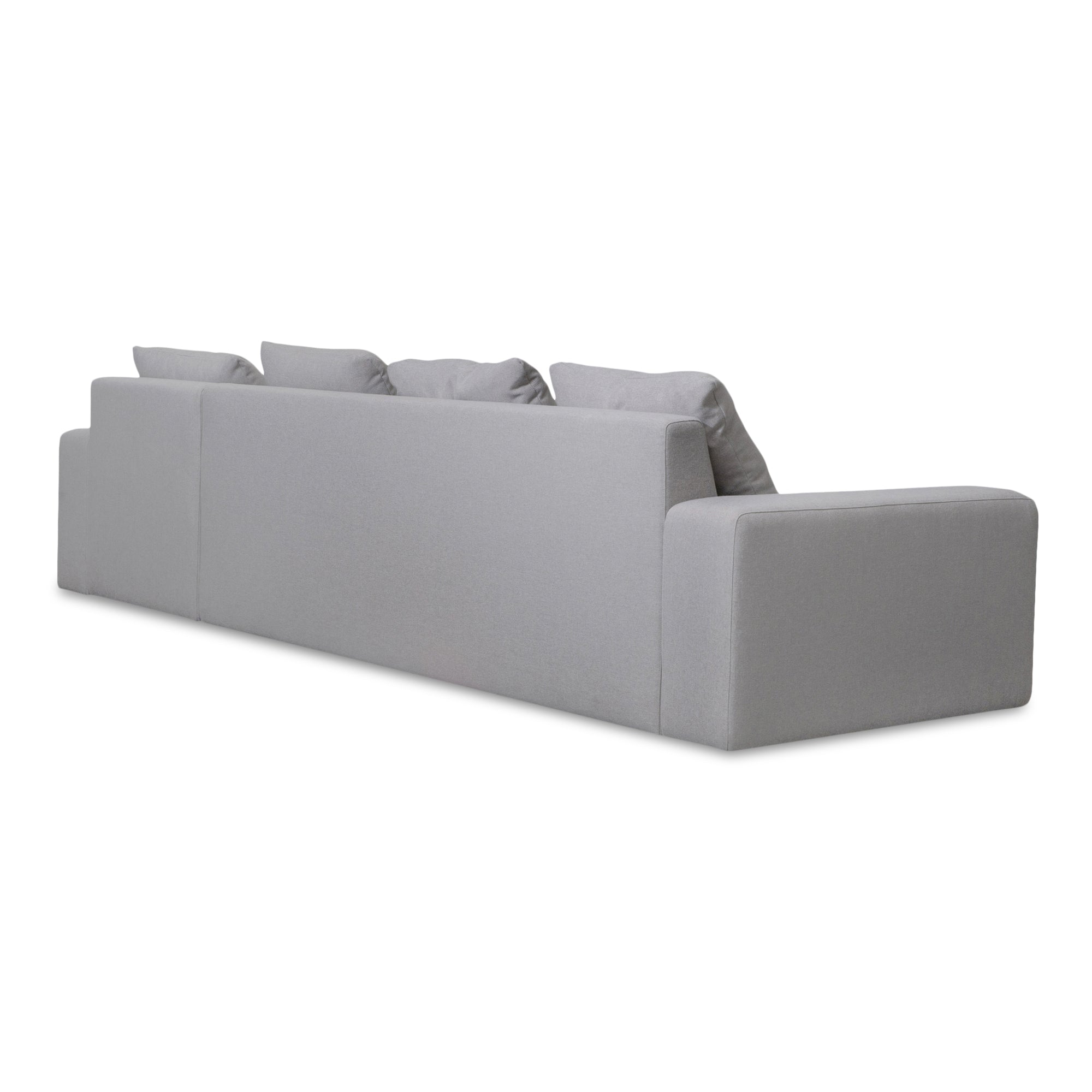 Experience comfort at its most refined with the Cavan Right-Facing Sectional Sofa by Nadaal Studios. With an expansive 125-inch width, this oversized sectional is designed for gathering, relaxing, and living in style. Wide track arms and a clean bench seat create a sculptural silhouette, while the durable grey polyester performance fabric blends seamlessly into modern interiors. The seat cushion features a supportive foam core topped with a plush 70 percent feather and 30 percent fiber fill for incredible softness that holds its shape. Four generously sized back cushions and evenly channeled seat construction ensure long-lasting comfort with minimal maintenance. Ideal for those who want a statement piece that feels as good as it looks.