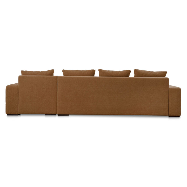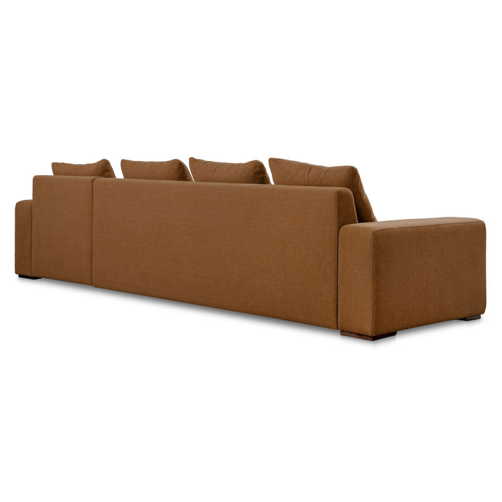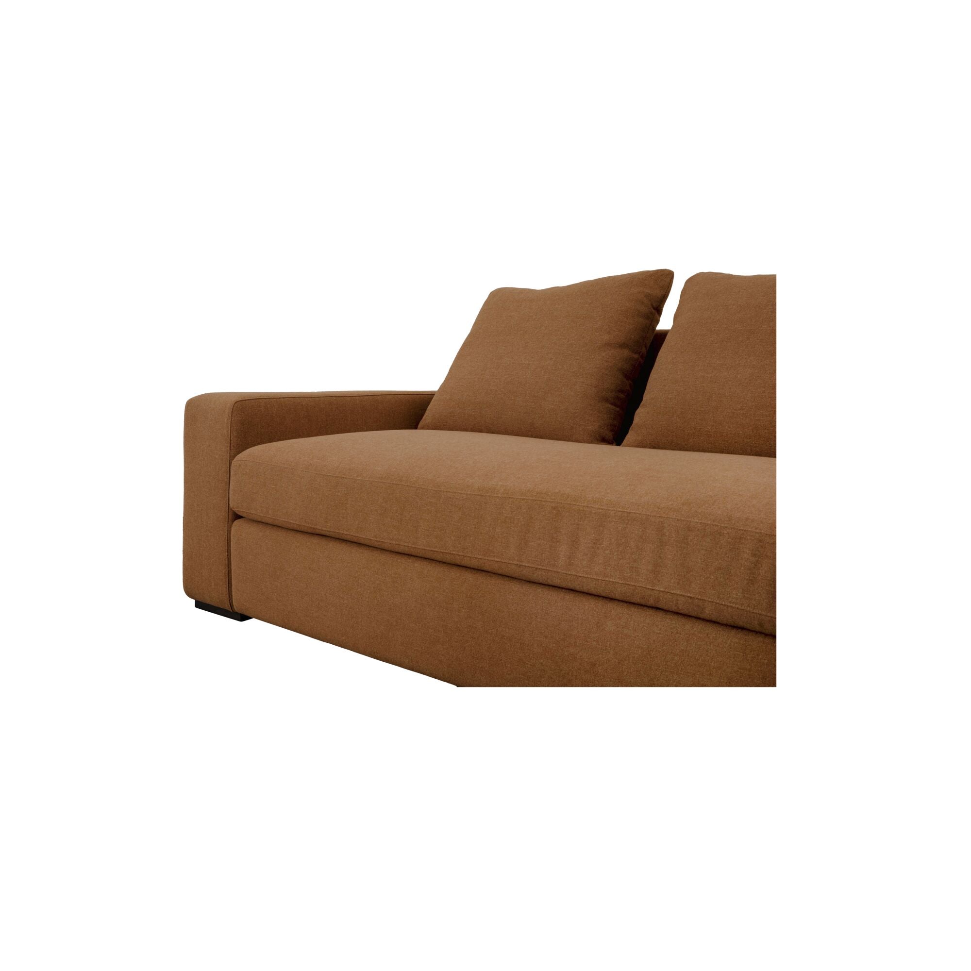 Infuse your space with warmth and texture with the Cavan Right-Facing Sectional in Rust. Its bold hue brings energy and depth, while the clean-lined silhouette and wide bench seat offer timeless appeal. Crafted with a high-performance rust-colored polyester fabric, Cavan handles daily use with ease while maintaining its rich tone and texture. The bench cushion features a plush feather and fiber-filled topper over a supportive foam base, with seat channeling to maintain shape. This five-seater sectional offers elevated comfort and sophisticated style, all in one generous frame.