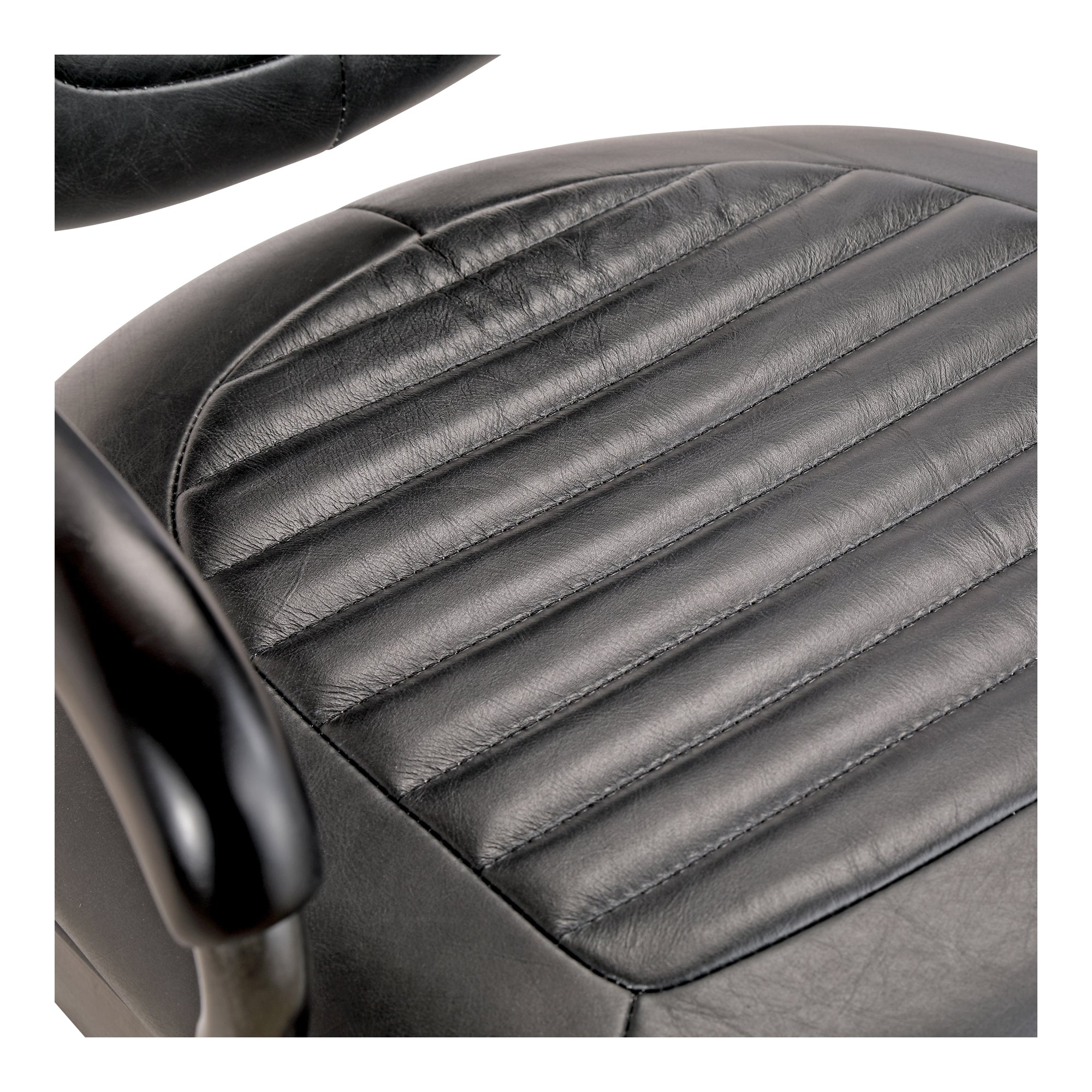 Step into a world where comfort meets style with the Nadaal Circe Office Chair. A masterpiece of modern functionality blended with timeless design, this chair is an industrial marvel. The brushed brass stainless steel frame, boasting a full-swivel capability, not only adds a touch of elegance to your space but also offers unparalleled durability. Upholstered in top-grain black leather, it provides a seating experience that is both luxurious and comfortable. The high-comfort padding, adjustable height mechanism, and posture-supporting backrest are meticulously designed to cater to your ergonomic needs, making those long hours at your desk less strenuous. Whether it's for your bustling home office, a professional studio, or a cozy study nook, the Circe Office Chair is a statement of sophistication and functionality.