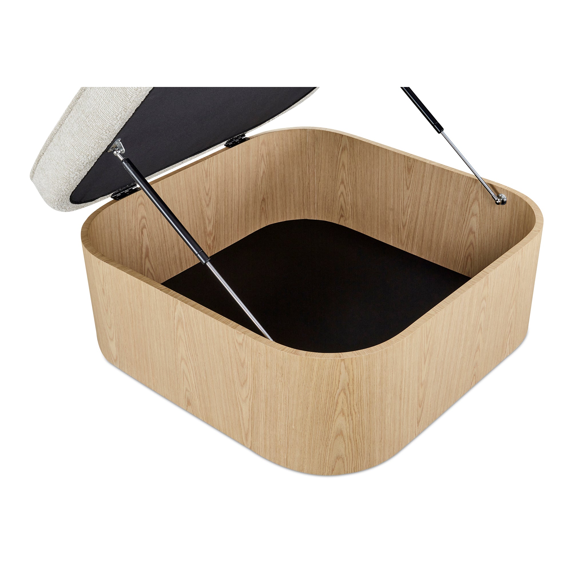 Clarisse Ottoman, Hydraulic Lift Storage, Ash Veneer Base, Flecked Oatmeal Upholstery, Ash