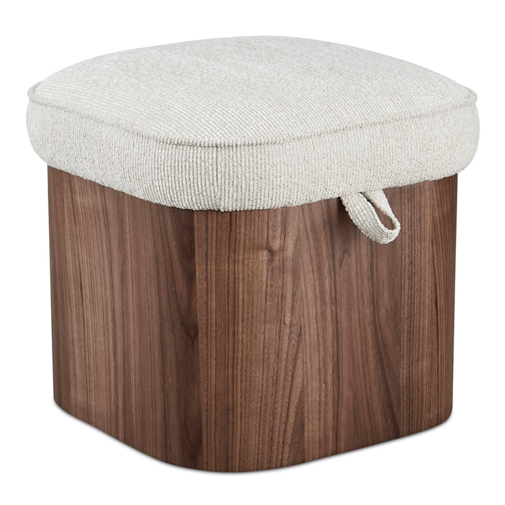 Clarisse Stool, Lift-Top Storage, Walnut Veneer Base, Flecked Oatmeal Upholstery, Walnut