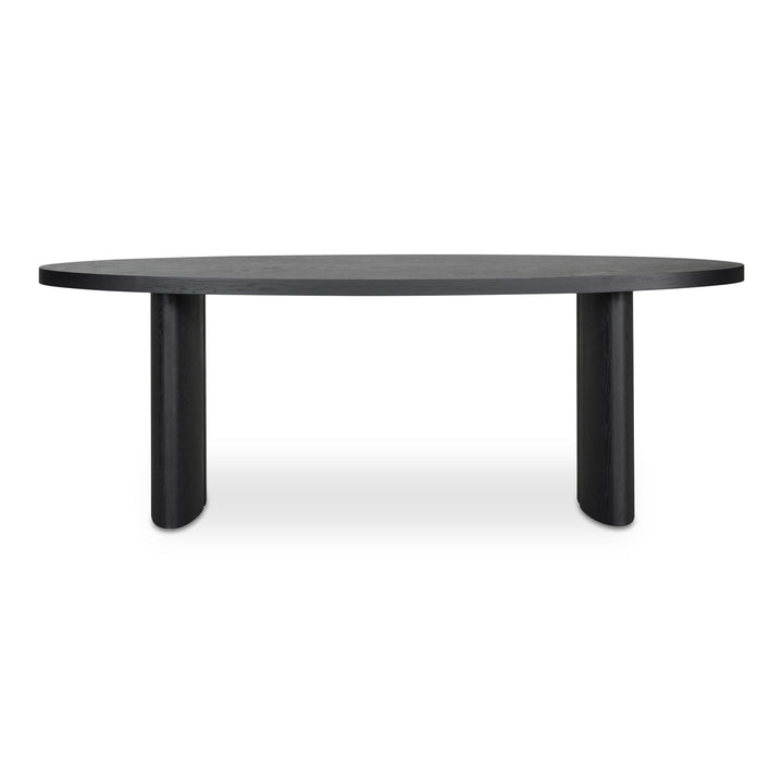 Introducing the NADAAL STUDIOS Cleo Dining Table, a modern masterpiece that combines style and functionality. This dining table features a stunning herringbone pattern on the oak veneer tabletop, creating a sophisticated and elegant look. The tabletop is 1.97 inches thick, providing a substantial and durable surface that comfortably seats six people. The MDF construction ensures the table is dent, crack, heat, fade, and scratch-resistant, making it ideal for everyday use. The sleek black finish adds a touch of contemporary elegance, making the Cleo Dining Table a standout piece in any dining room. Perfect for family dinners or entertaining guests, this table brings both beauty and practicality to your home.