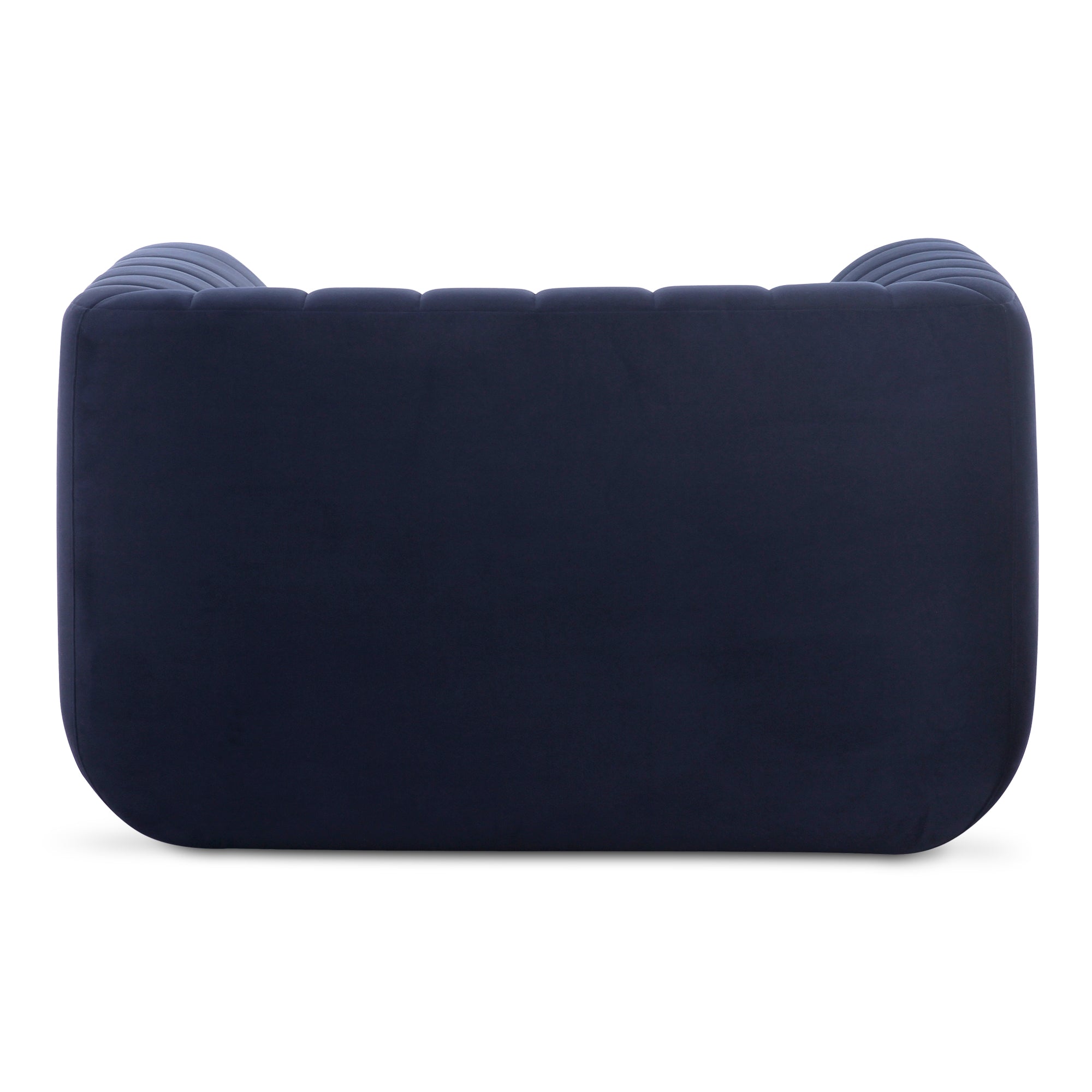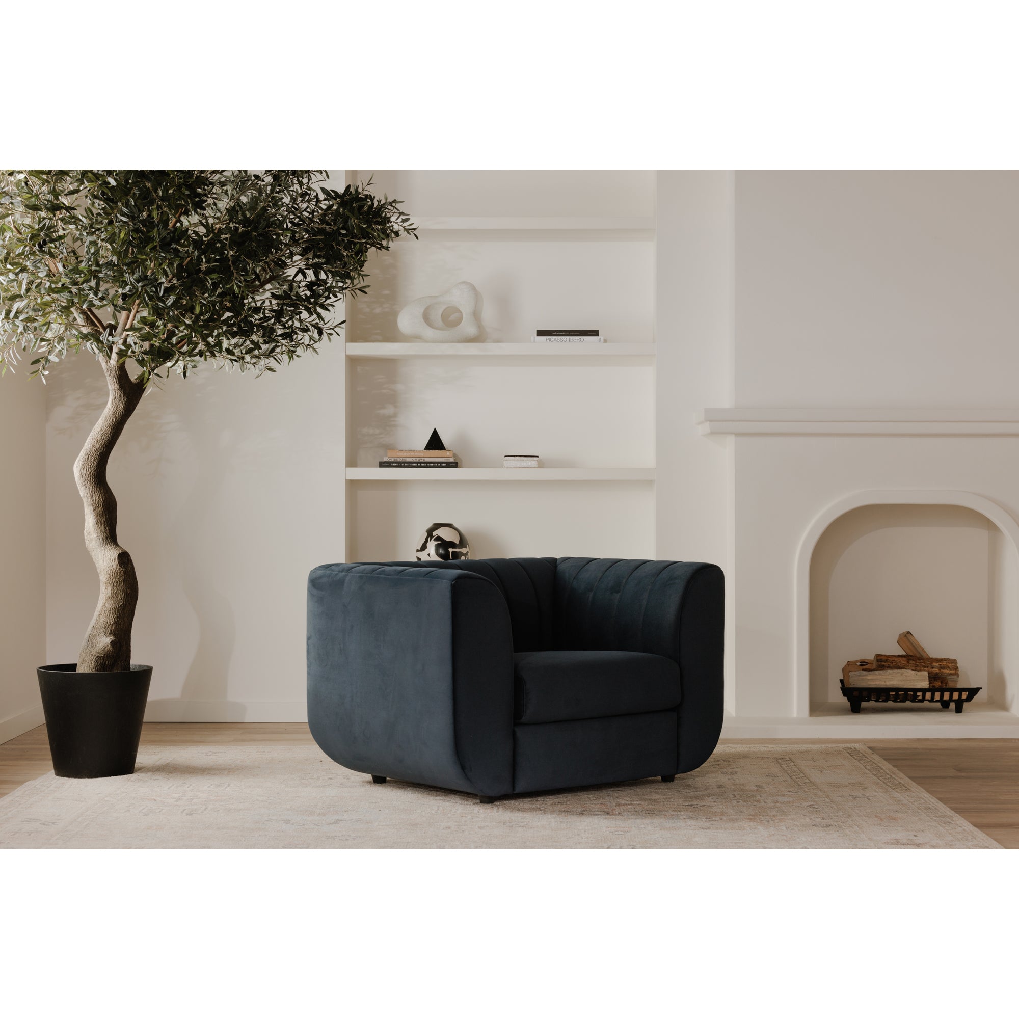 Corbin Lounge Chair, Contemporary Polyester Upholstery, Channel Detailing, Deep Blue