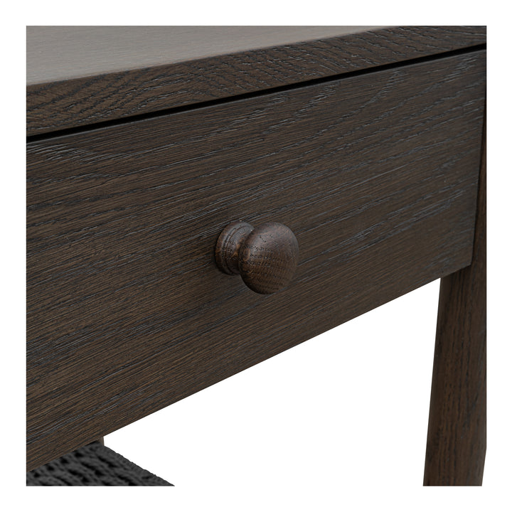 Create a calm, well-organized bedside with the Corlan Nightstand — a design-forward piece that blends natural texture with everyday function. The oak grain and paper rope shelf bring warmth and depth, helping your main bedroom feel grounded and intentional. One soft-close drawer keeps essentials out of sight while the open shelf stores books or a basket. With a solid oak leg and wood handle, Corlan is built to handle daily life and evolve with your space. Place it solo or as a pair to complete a balanced, modern bedroom setup.