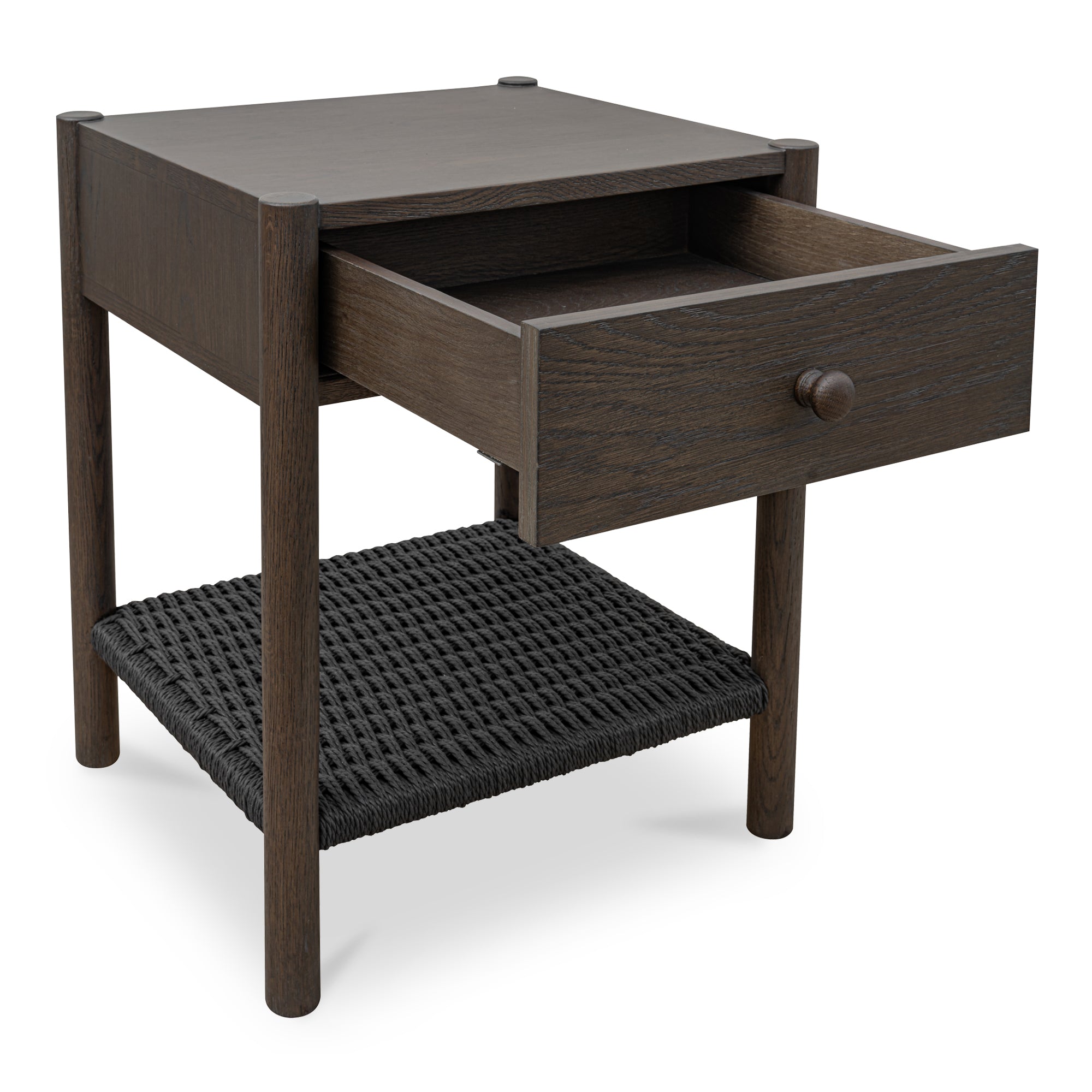Corlan Nightstand, Oak Frame with Paper Rope Shelf 1-Drawer Bedside Table, Brown