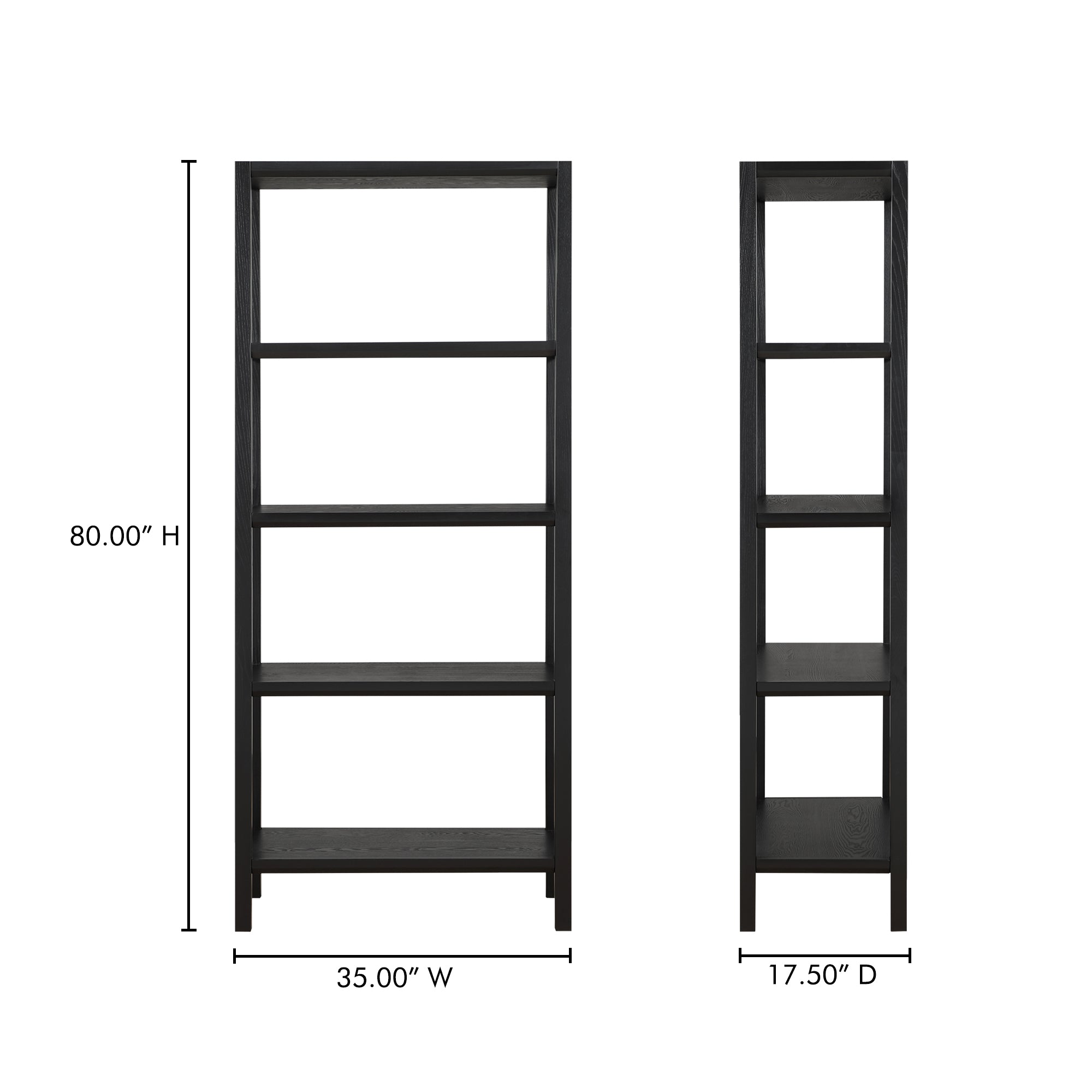 Corlina Bookshelf, Solid Ash Frame with 4 Ash Veneer Shelves, Black Finish