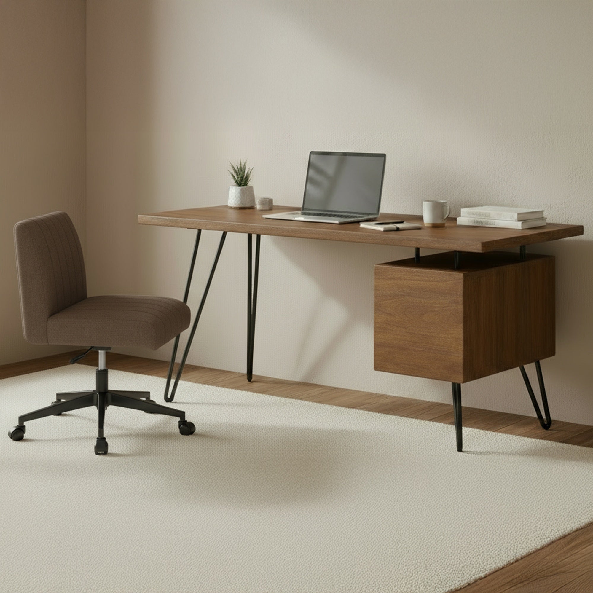 The Corvin Office Chair merges comfort, durability, and modern design with its fully upholstered, high-performance fabric and tailored channel detailing. Generous seat and back padding offer reliable support for long work sessions, while the smooth swivel function adds freedom of movement for dynamic workspaces. A sturdy iron frame reinforces the chair’s streamlined silhouette, bringing strength and contemporary polish. Thoughtfully crafted for everyday use, it delivers a balance of refined style, ergonomic comfort, and lasting performance.