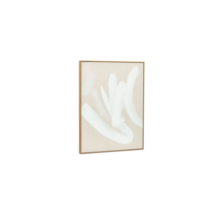 The NADAAL STUDIOS Cressida Framed Painting offers a compact yet impactful design, featuring lyrical opaque brush strokes on a textured acrylic canvas. Its neutral tones, highlighted by multicolor accents, create a sophisticated balance that enhances any wall space. Framed with durable solid pine and equipped with hanging hardware, this painting is as functional as it is artistic. Its smaller size makes it perfect for gallery walls, cozy corners, or spaces needing a touch of modern artistry.