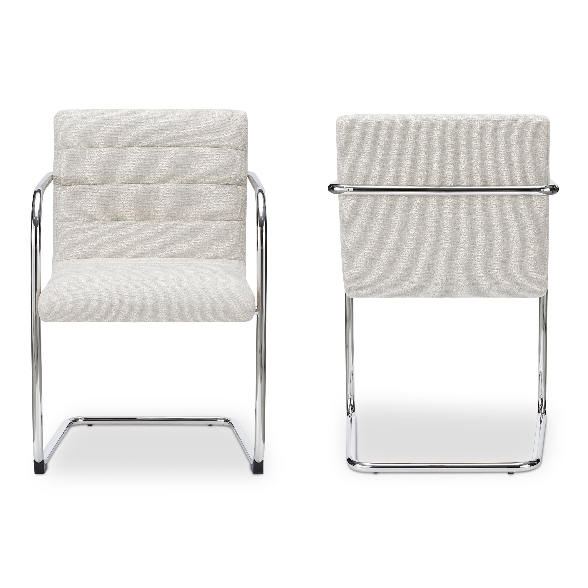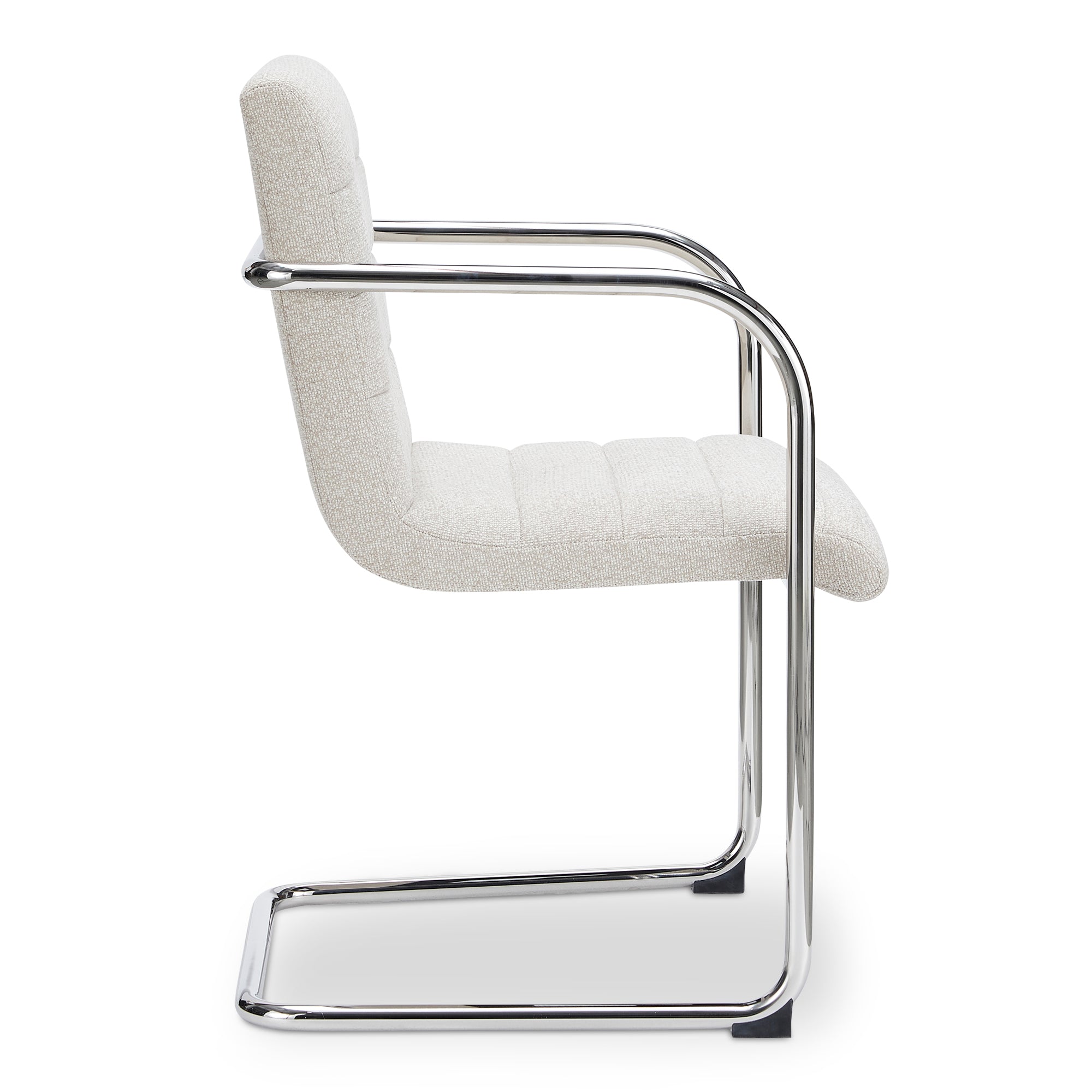 Cyran Dining Chair, Cantilever Stainless Steel Frame, Channeled Polyester Upholstery, Beige
