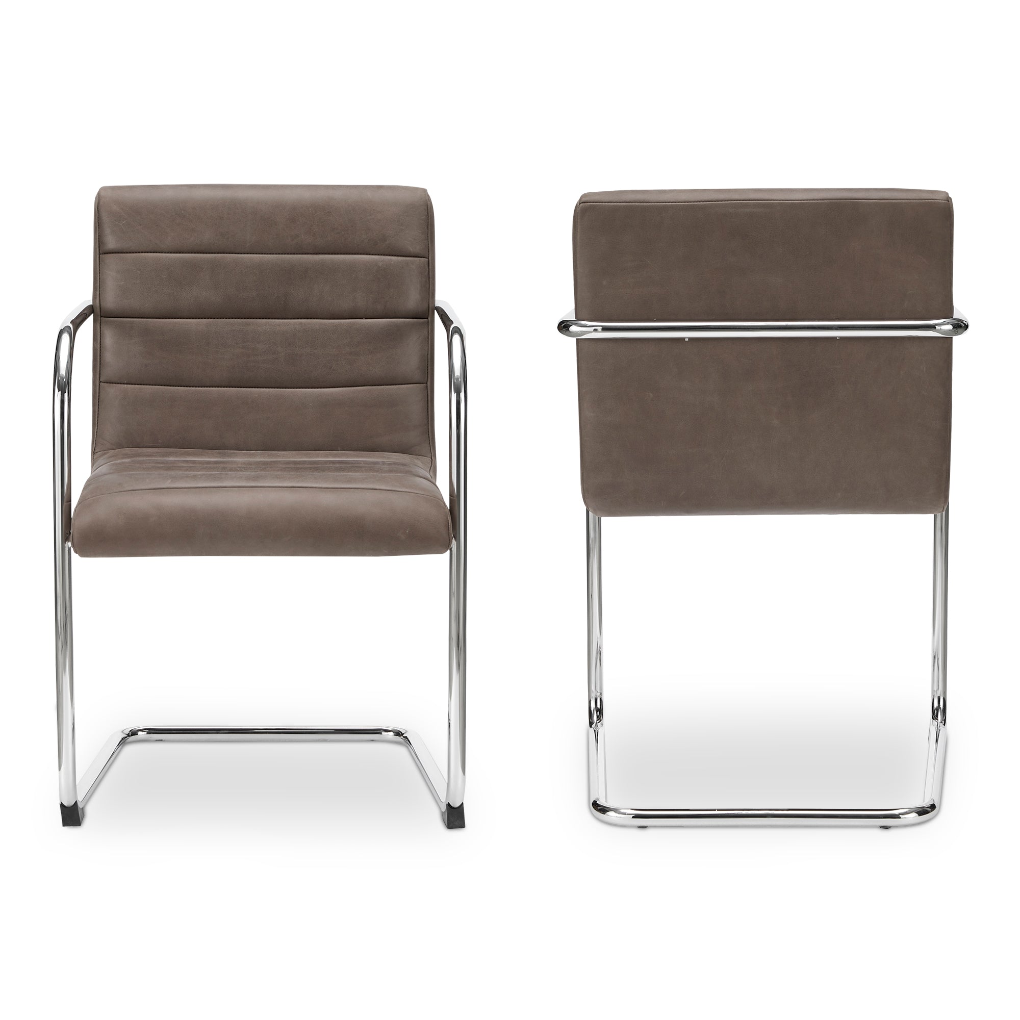Cyran Dining Chair, Cantilever Stainless Steel Frame, Channeled Top-Grain Leather, Brown