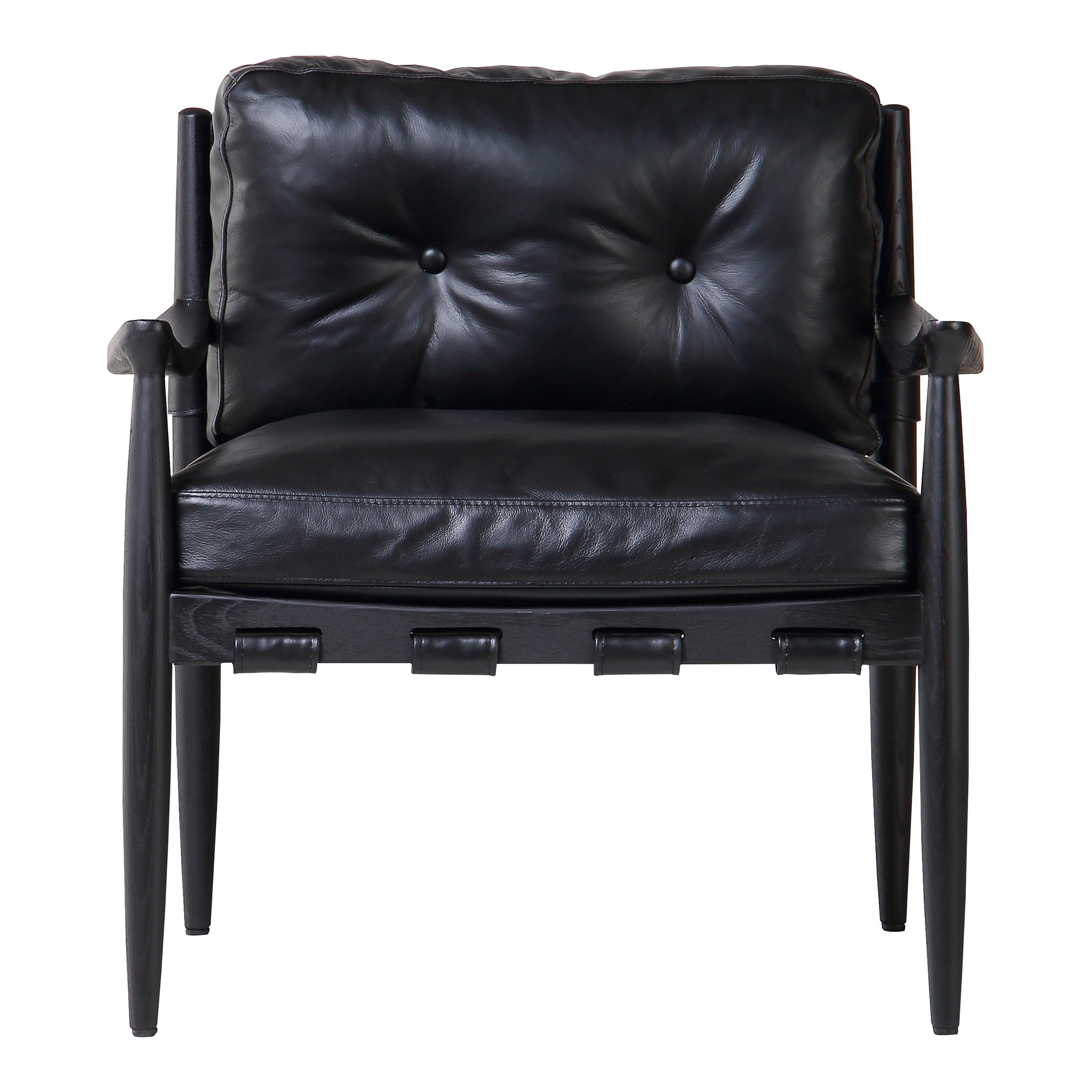 Daryl - Arm Chair with Ash Wood Frame and Leather in Black