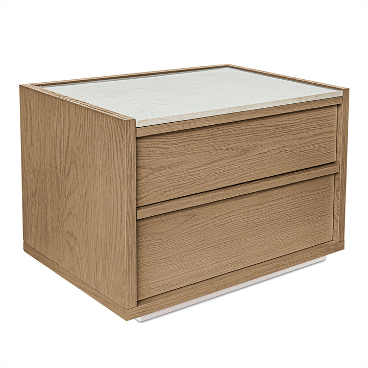 Delmira Nightstand, 2-Drawer Solid Oak Frame With Rosa Marble Top, Oak