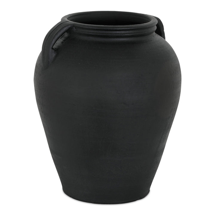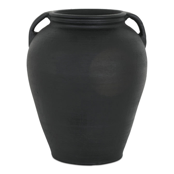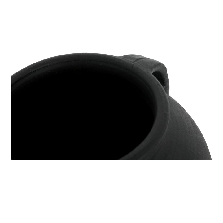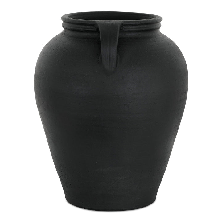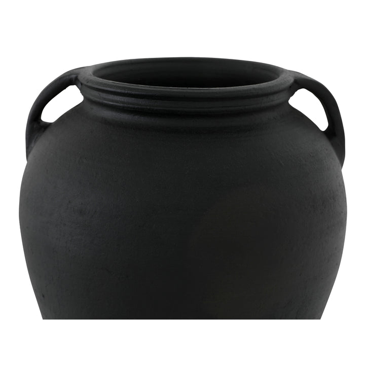 Edrion Vase, Hand-Thrown Terracotta, Greco-Roman Handle Detail, Black