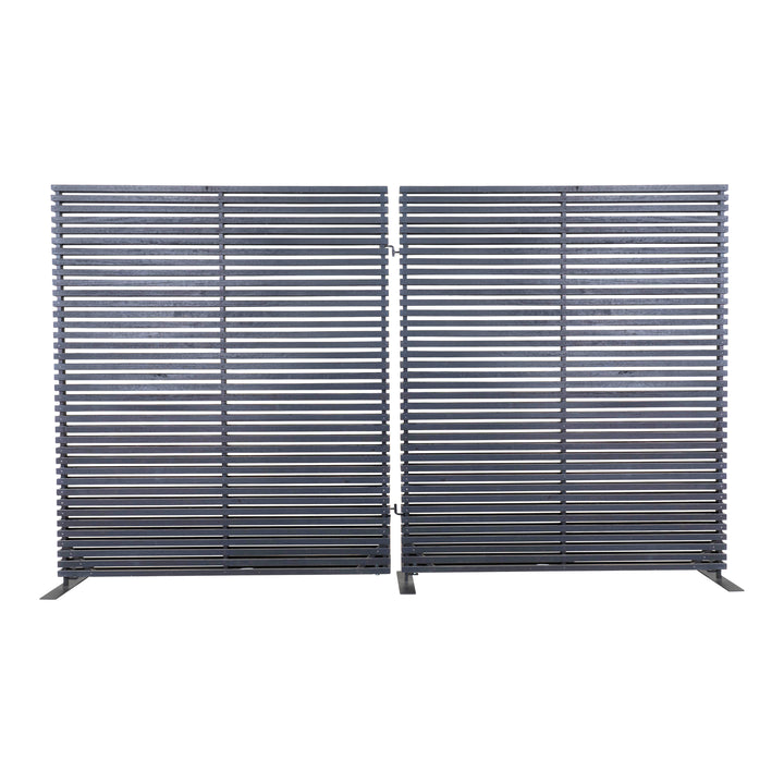 Elara, Screen with Natural Black Hardwood Slats, Sturdy Aluminum Build, Black