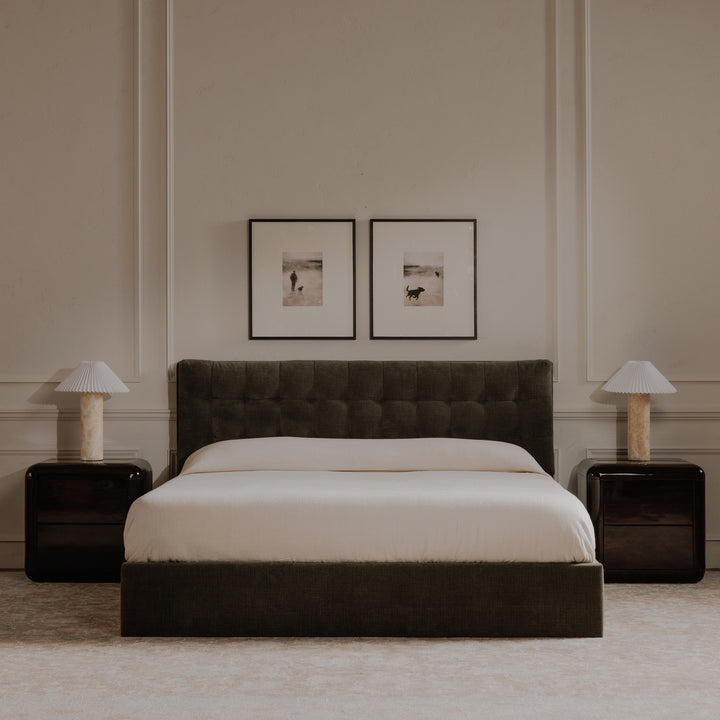 The Elaria Nightstand from NADAAL STUDIOS is a masterclass in modern luxury with a functional edge. Its high-gloss acacia body is softened by rounded corners, bringing a sculptural and tactile touch to its boxy silhouette. Designed with two push-to-open drawers and side-mounted glides, this piece keeps your essentials close and your space uncluttered. No assembly required—Elaria is ready to elevate your bedroom from day one.