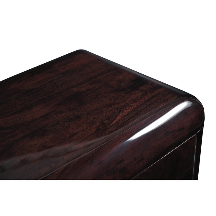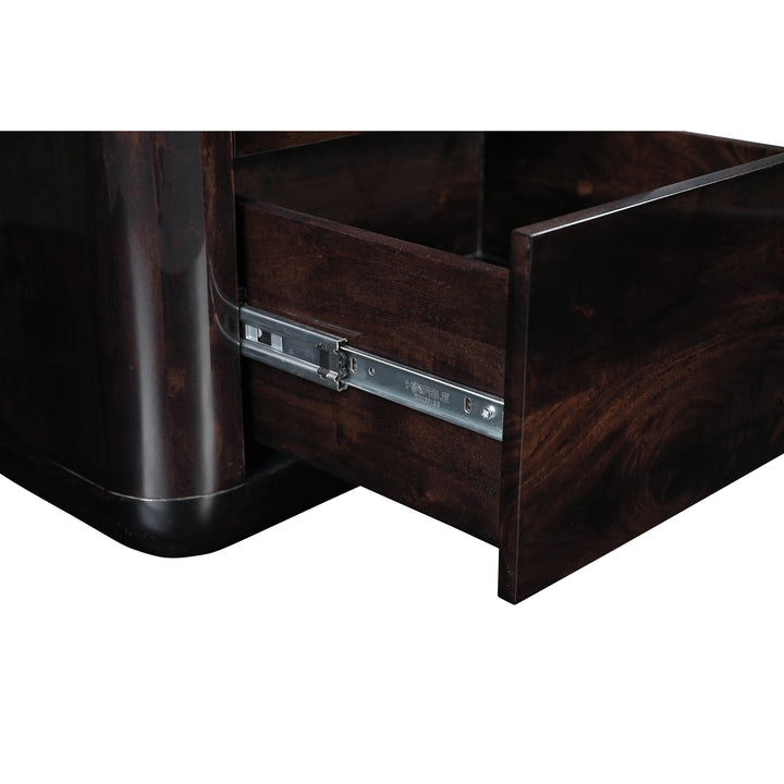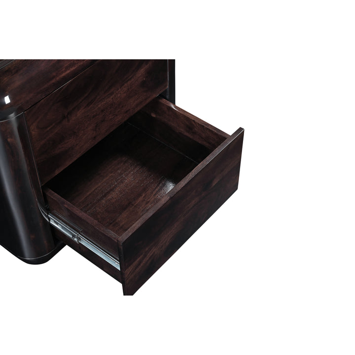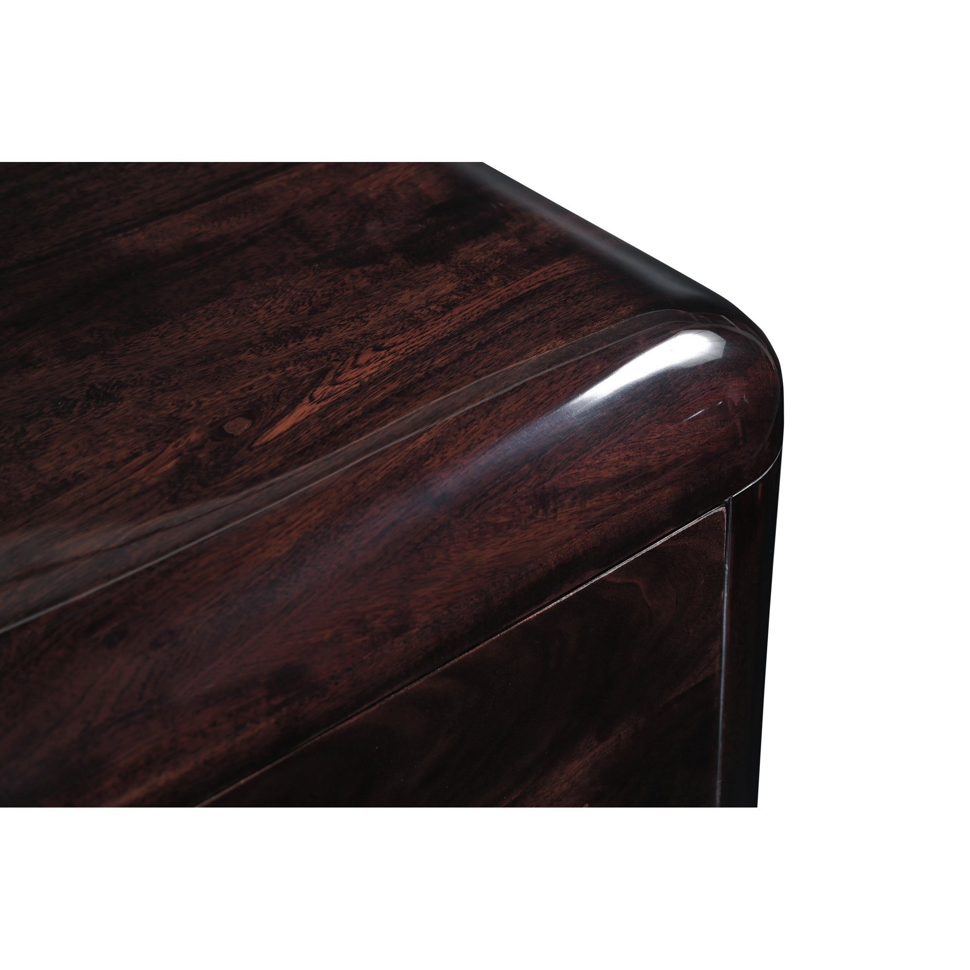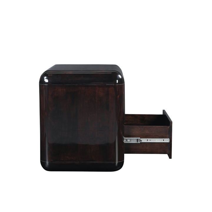 Elaria Nightstand, Boxy High Gloss Acacia Body with Rounded Corners Push-to-Open Drawers, Dark Brown